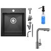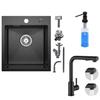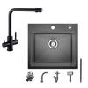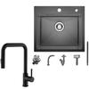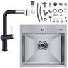 EVIER DE CUISINE 1 Bac 50×45CM inox Noir anthracite,mitigeur de cuisine extractible avec 2 Fonctions douchette