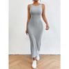 Весна-лето Длинное платье без рукавов с бретелью через шею Сексуальное трикотажное платье с поясом на бедрах
