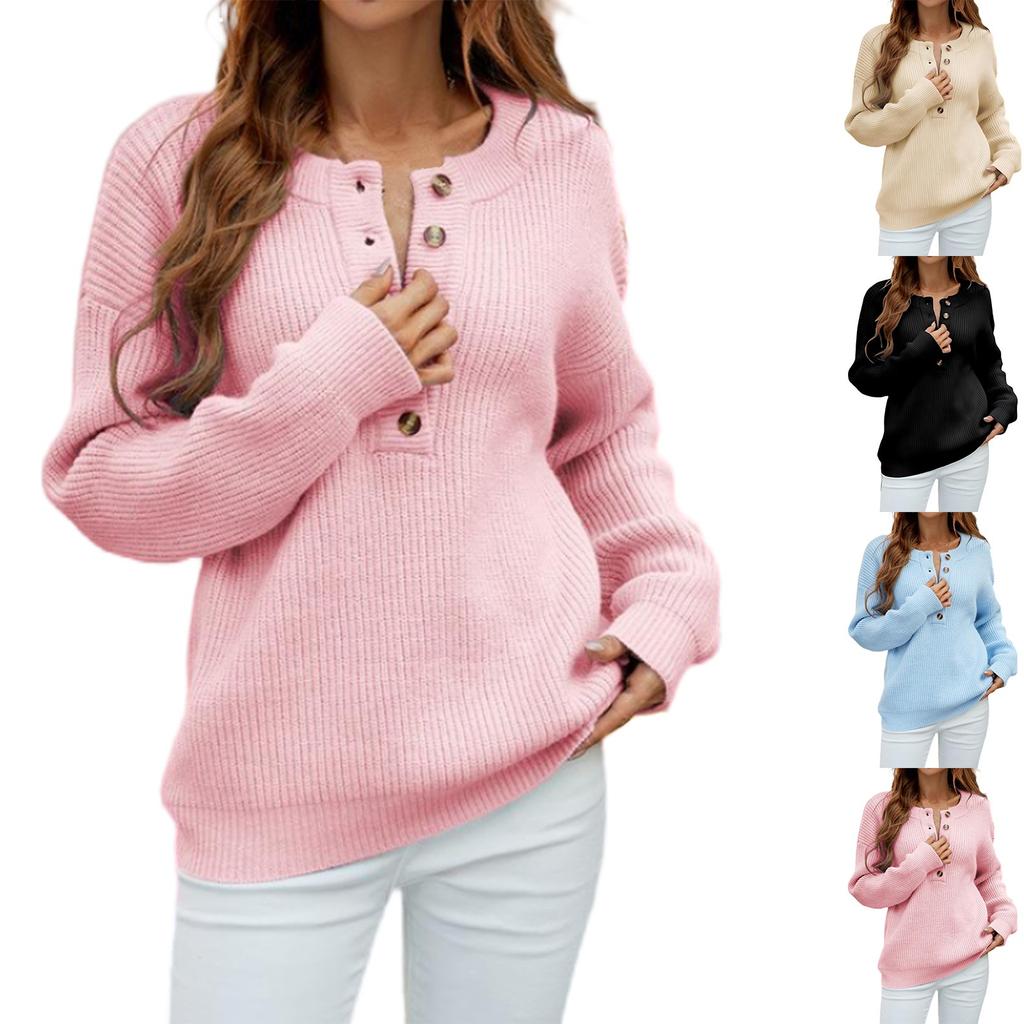 Модный свитер с круглым вырезом и зимний новый однобортный однотонный свитер-пуловер для женщин — купить товар онлайн с бесплатной доставкой до всему миру!