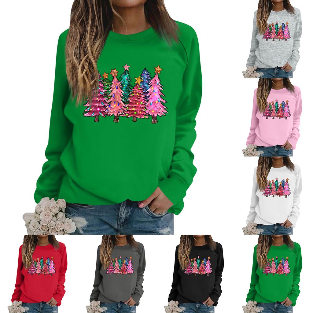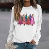 Женские футболки, свободные, модные и повседневные толстовки с круглым вырезом и длинными рукавами с рождественским принтом