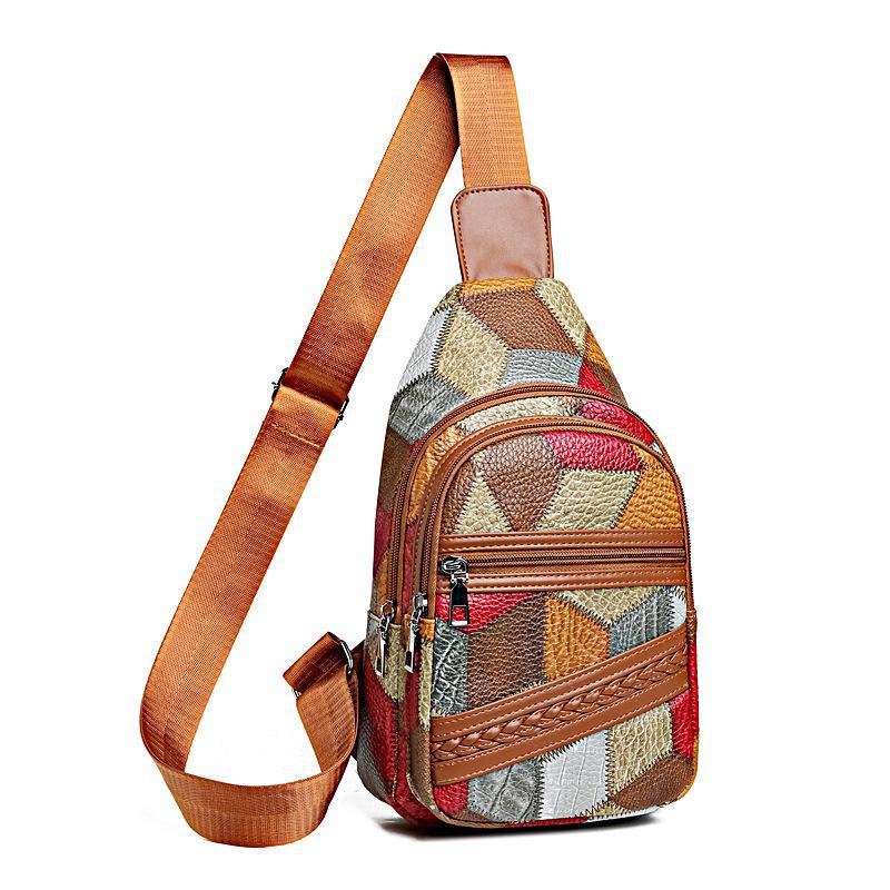 Модная женская универсальная сумка через плечо и на грудь - стильный контрастный кожаный маленький рюкзак