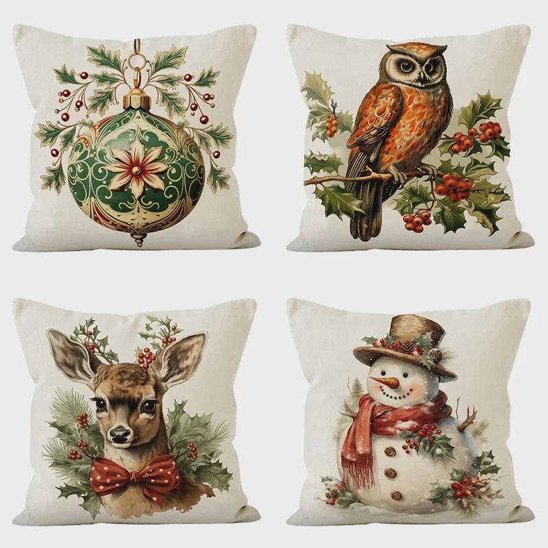 Льняная наволочка со снеговиком для украшения дивана на Рождество