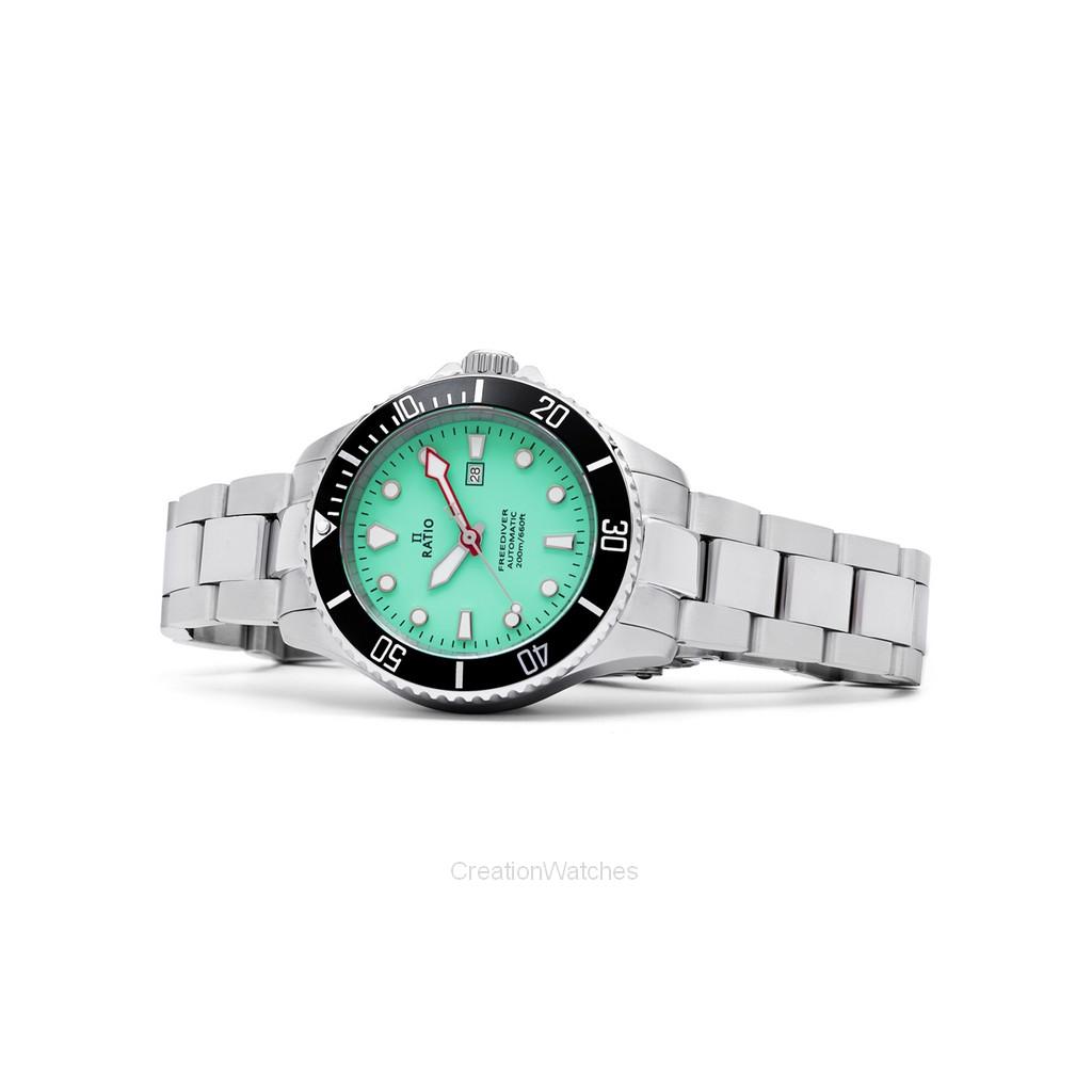 RATIO Женские часы FreeDiver Sapphire из нержавеющей стали с зеленым циферблатом и автоматическим механизмом RTFL835 200M