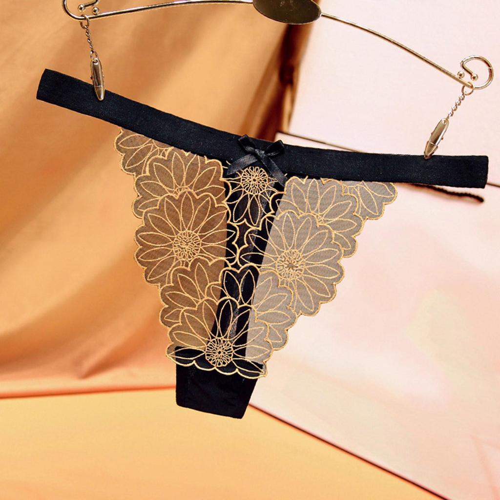 Эротические трусики Сексуальное женское белье Стринги Женские кружевные стринги с вышивкой в виде ромашек Соблазнительное эротическое белье Прозрачное нижнее белье с заниженной талией