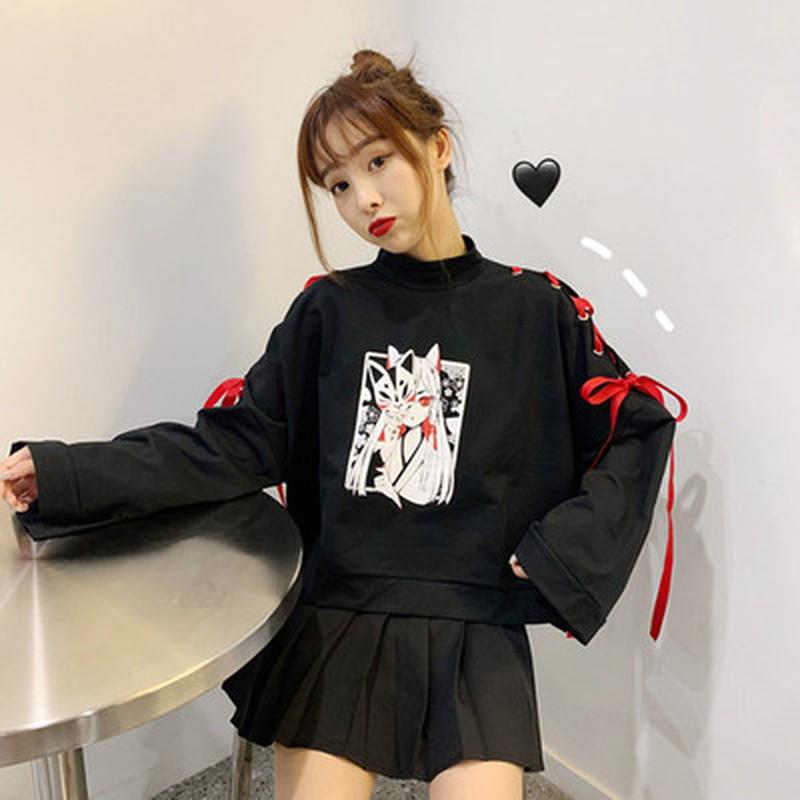 Женская одежда Аниме Печатный крест Лента Мужская футболка Harajuku Весенний топ Толстовки Свитшот Японский стиль Аниме Топ
