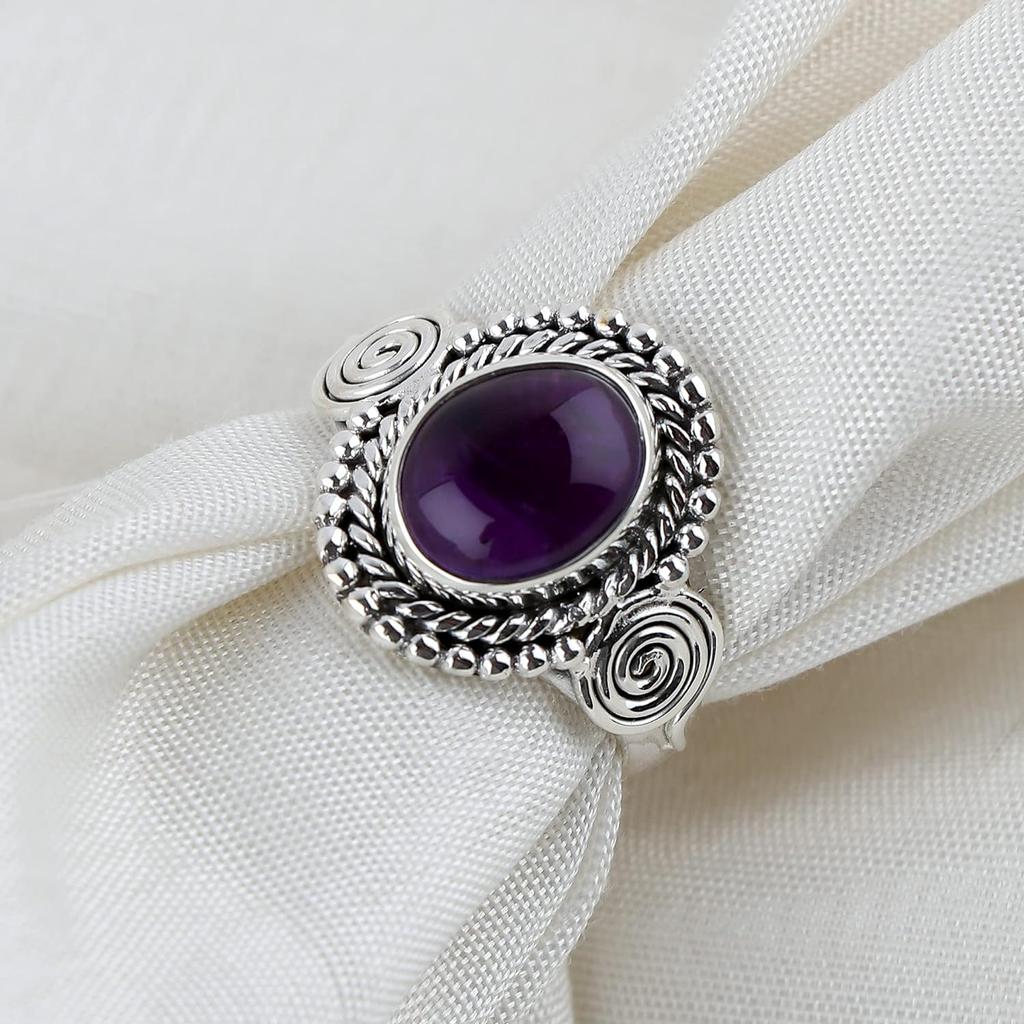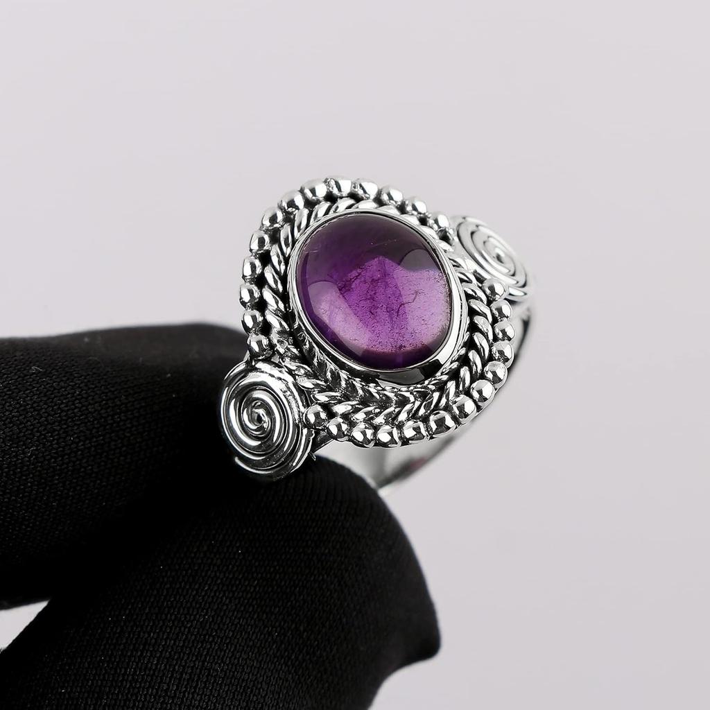 Аметист Драгоценный Камень Твердый Серебро 925 Пробы Бохо Дизайнерское Кольцо Подарок Для Нее Заявление Ювелирные Изделия