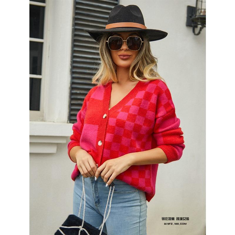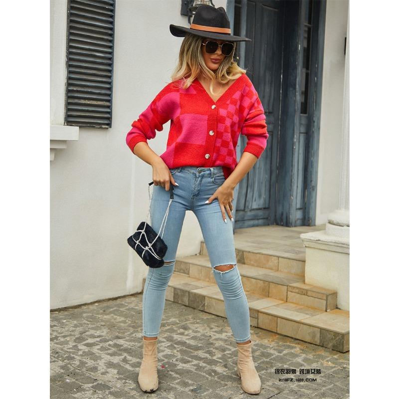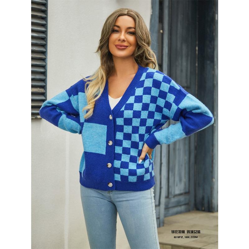 Женский вязаный свитер с клетчатой лоскутной вязкой, верхняя одежда