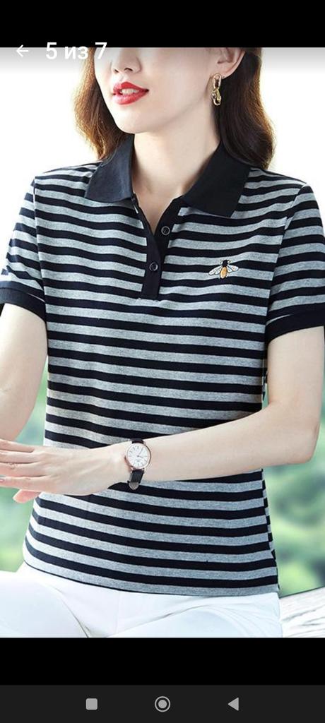Футболка пришла черного цвета, заказывала синюю(хорошая уловка, как на картинке), после первой же стирки, не стирки, полоскания в холодной воде, футболка стала серая, белые и чёрные полосы стали серые, что говорит о" качесте"товара!!!!