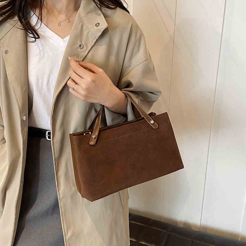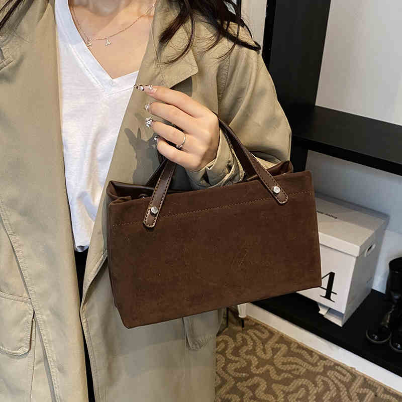 Сумка через плечо из замши в стиле ретро для женщин, большая вместимость, новая осенне-зимняя универсальная повседневная сумка из искусственной кожи с матовой ручкой, сумка для поездок на работу
