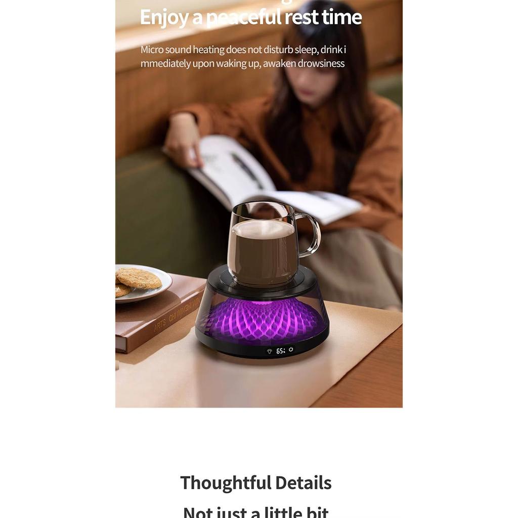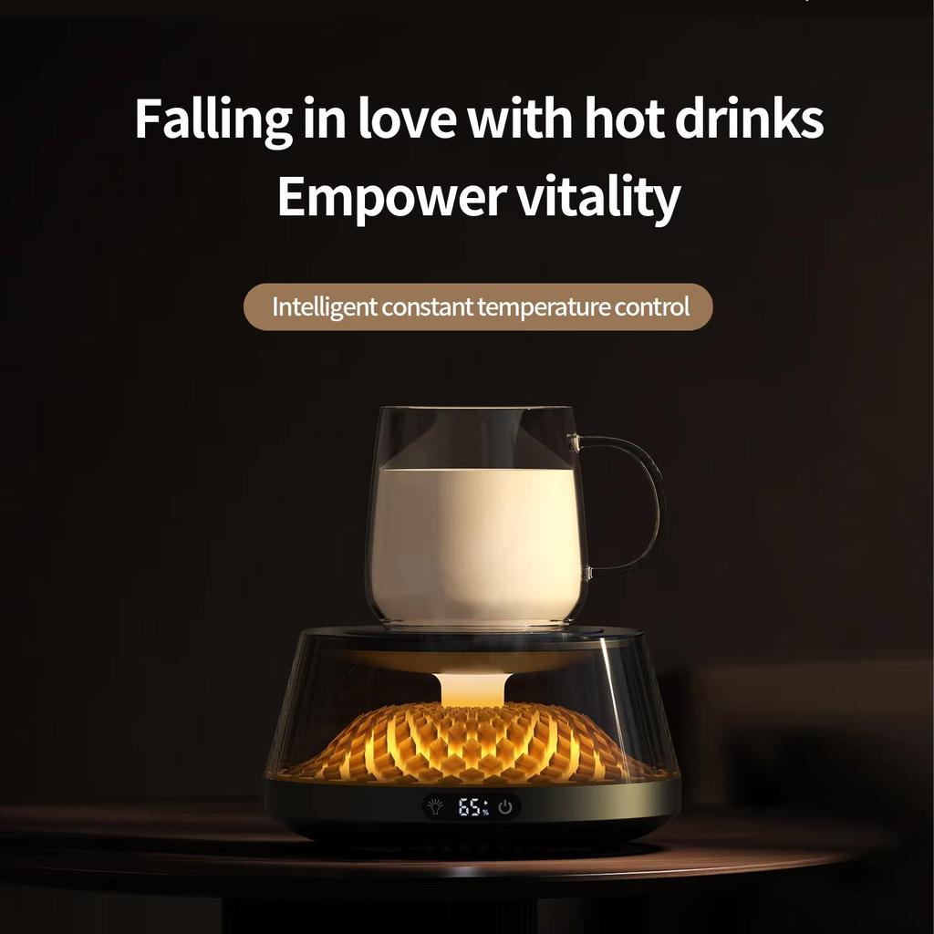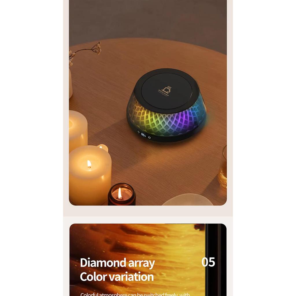 2. Динамический светодиодный дисплей: Подогреватель для кофейных чашек оснащен нижней светодиодной подсветкой, которая при изменении температуры создает ослепительный визуальный эффект, напоминающий извержение вулкана, добавляя вашему столу нотку футуристичных технологий и создавая уникальную атмосферу.