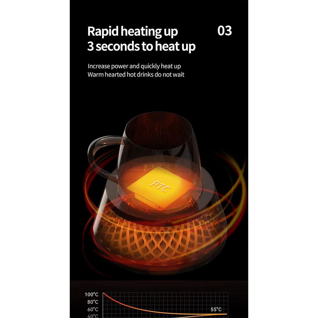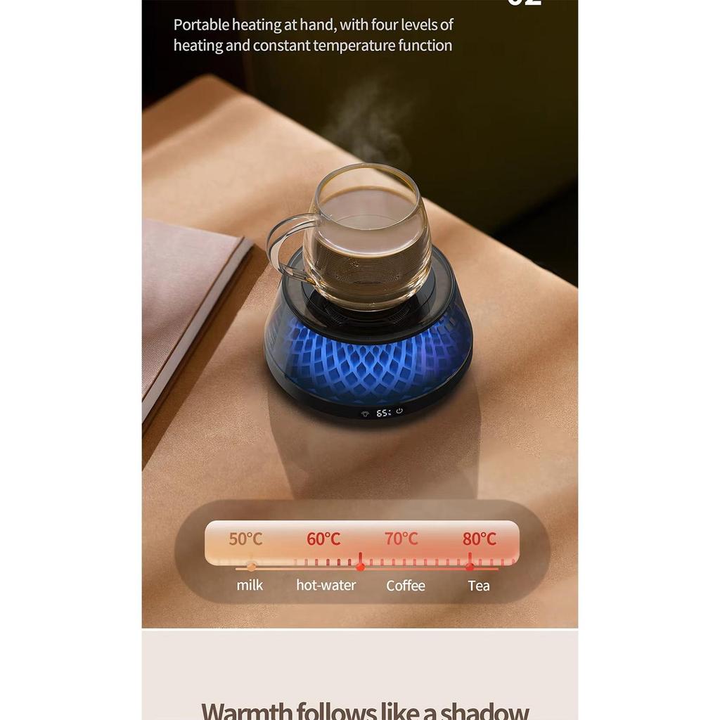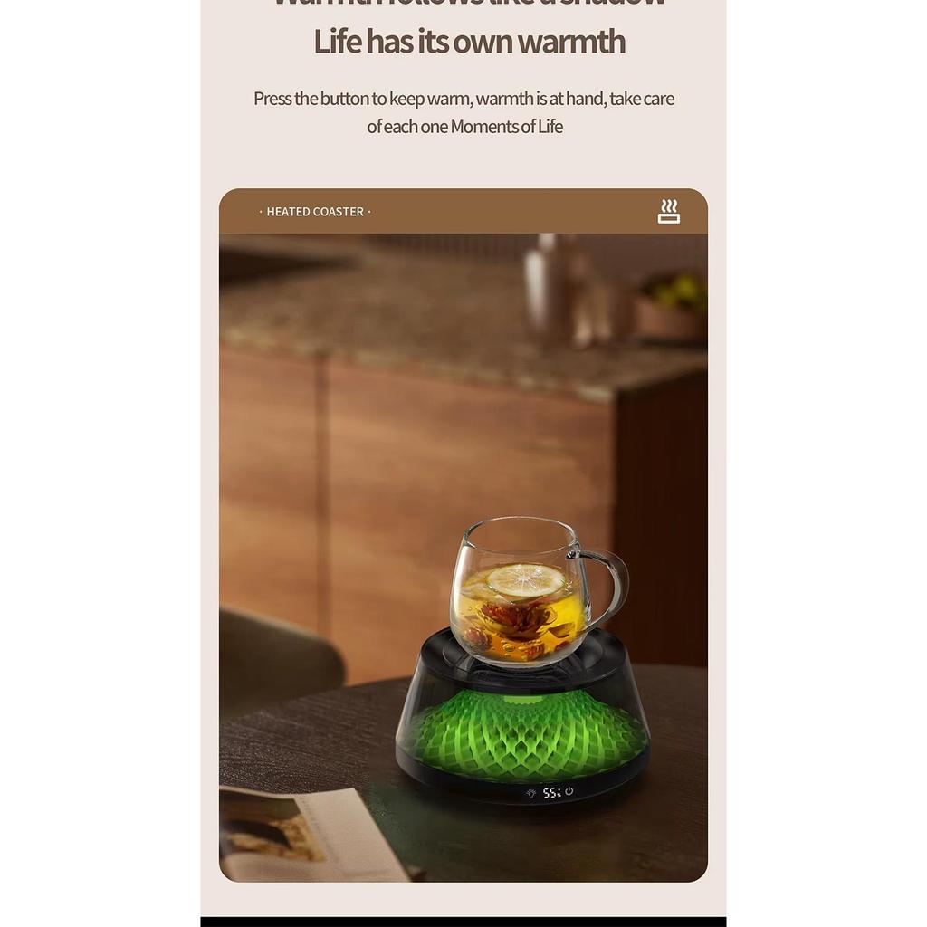 2. Динамический светодиодный дисплей: Подогреватель для кофейных чашек оснащен нижней светодиодной подсветкой, которая при изменении температуры создает ослепительный визуальный эффект, напоминающий извержение вулкана, добавляя вашему столу нотку футуристичных технологий и создавая уникальную атмосферу.