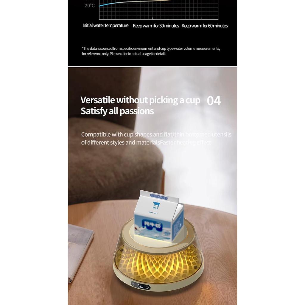 1. Точный контроль температуры: Наша термостатическая подогреваемая подставка оснащена встроенной высокоточной системой поддержания температуры, которая позволяет вам устанавливать и поддерживать идеальную температуру напитка, гарантируя, что ваш кофе, чай или молоко будут идеально теплыми с каждым глотком, обеспечивая индивидуальный температурный режим.