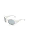 The Bottega Veneta Shield Frame Injection Sunglasses feature a sophisticated color scheme of white and silver. With a lens width of 61mm, temple length of 115mm, and bridge width of 18mm, the frame is crafted from injection material, and incorporates a saddle nose bridge. It is fitted with non-polarized lenses and comes with a protective designer case and cleaning cloth. This product is made in Japan.