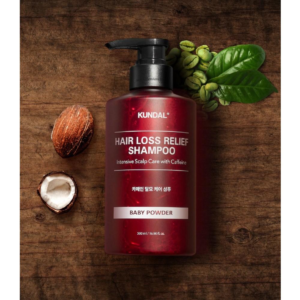 Kundal функциональный шампунь для ухода за волосами против выпадения с кофеином, аромат детской присыпки, 500 мл, 2 шт.