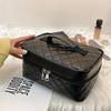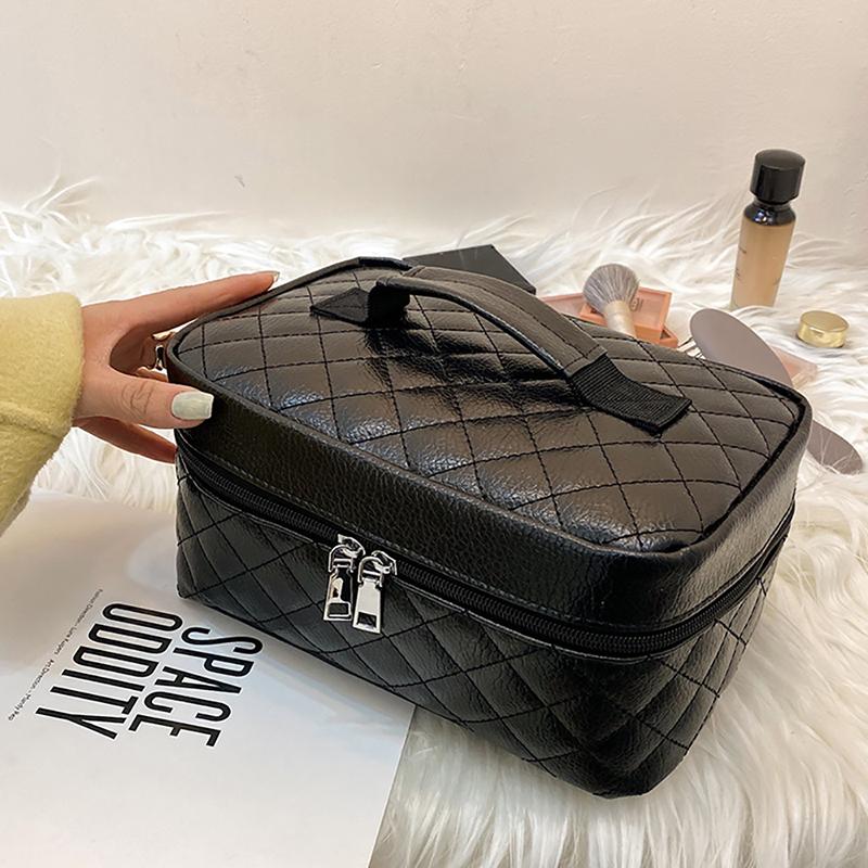 Черная клетчатая квадратная косметичка большой емкости из мягкой кожи, сумка для хранения, женская новая модная простая стильная однотонная сумка