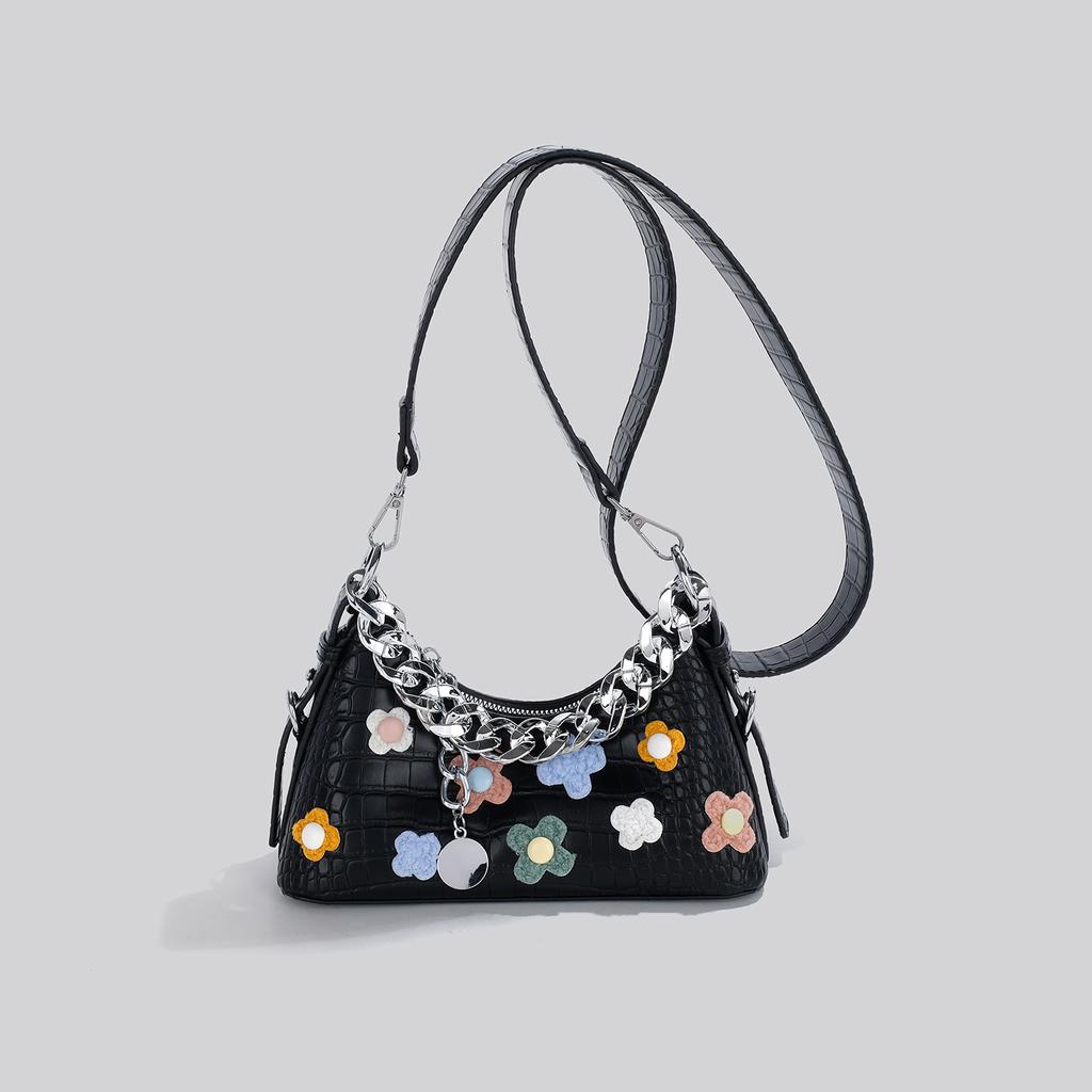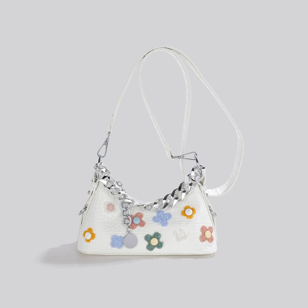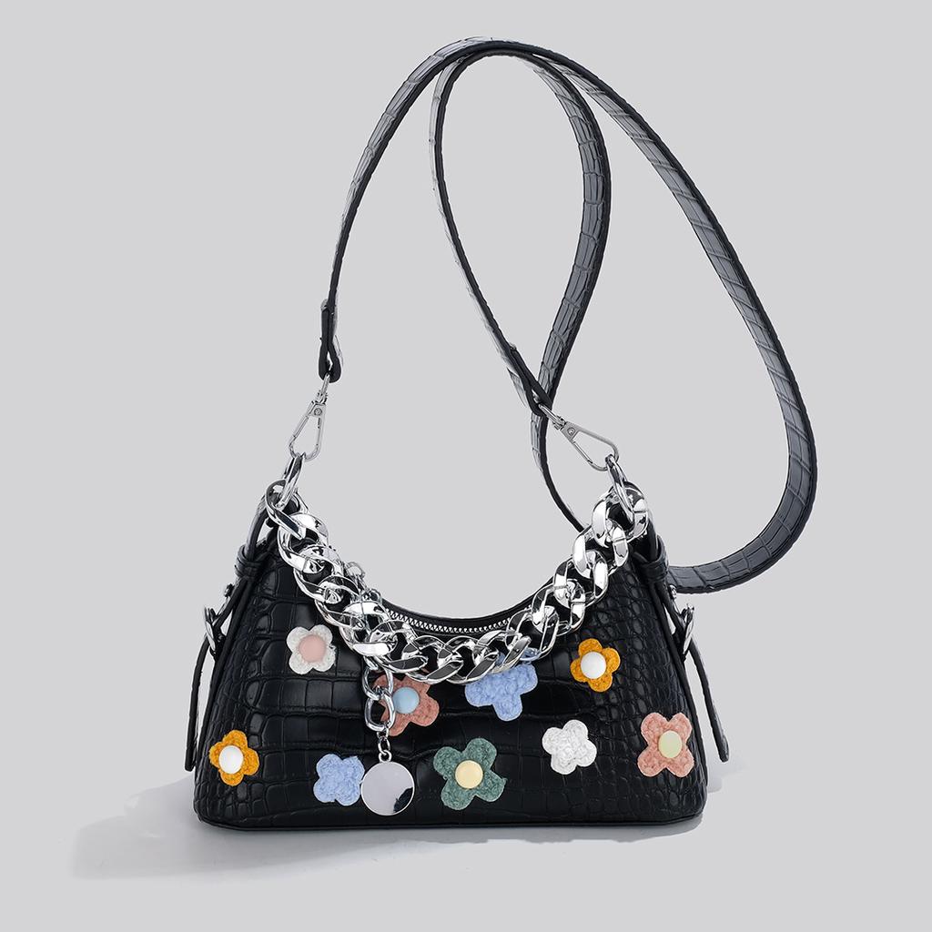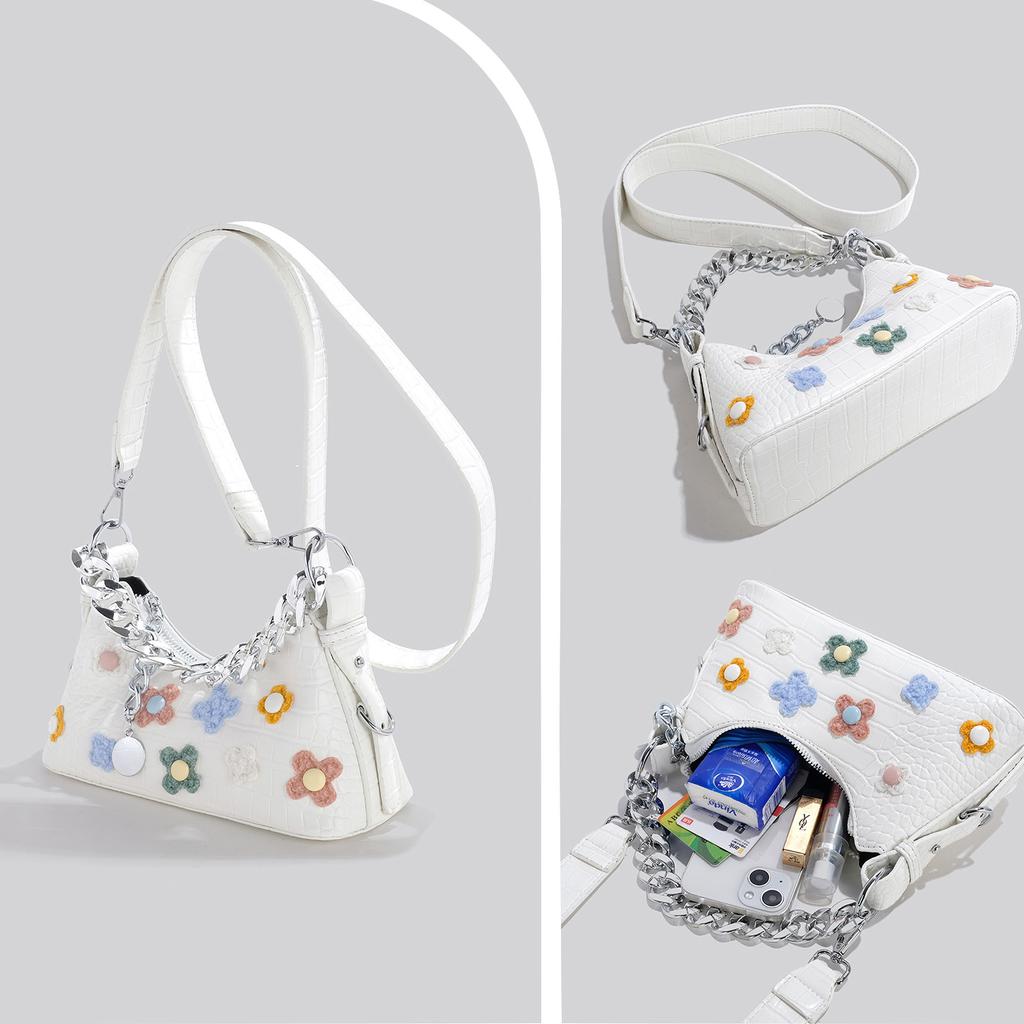 Модная женская сумка подмышку Летняя новая ПУ дизайнерская сумка с цветочной отделкой на молнии Милая одноплечевая сумка кроссбоди