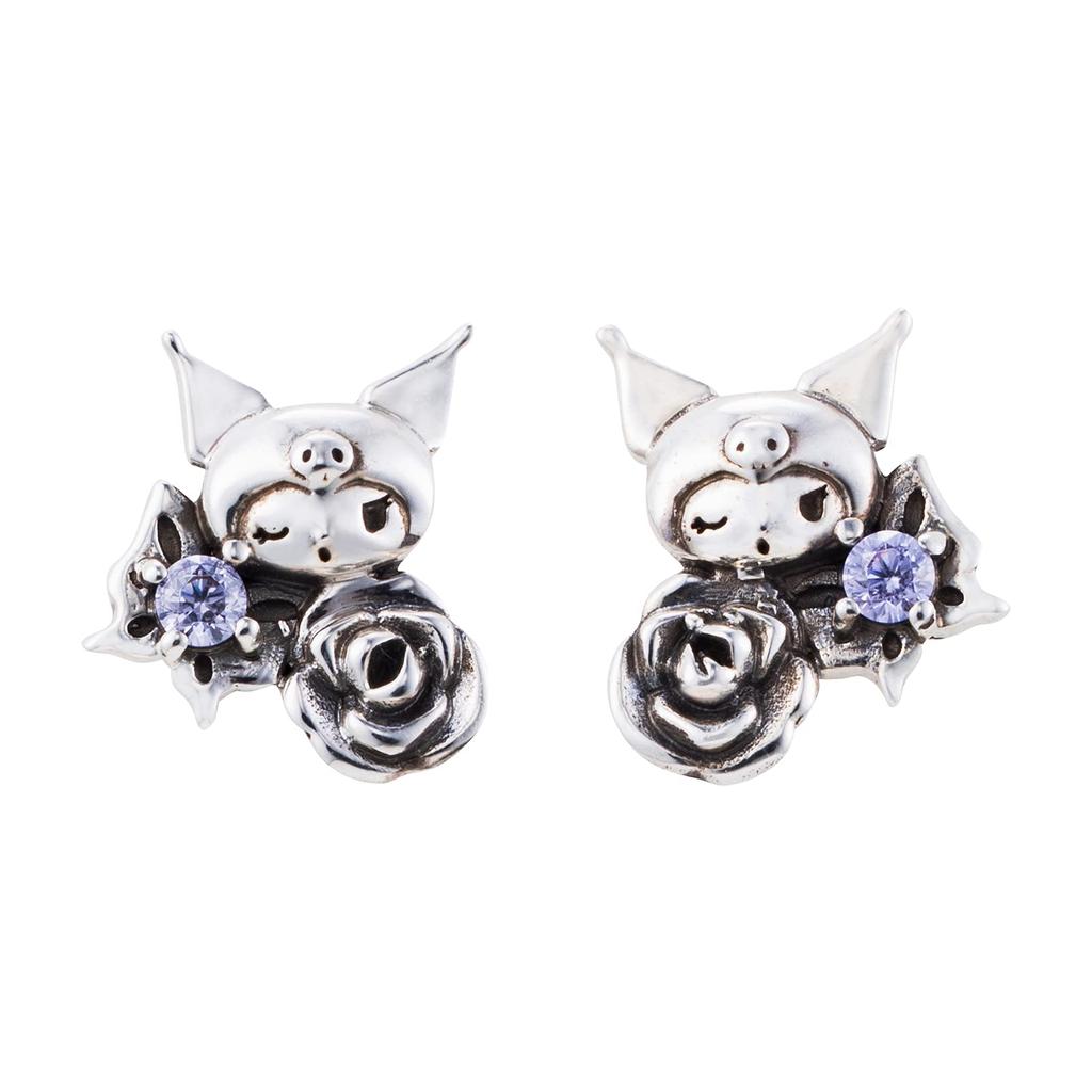 [Белый клевер] Серьги Куроми из серебра 925 пробы с кубическим цирконием, оксидированными, в виде бабочки, персонажи KUROMI Sanrio SAKU-P004 — купить товар онлайн с бесплатной доставкой до всему миру!