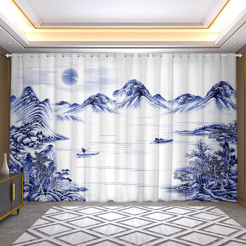 2 панели Новые китайские ретро-шторы Пейзаж Лошадь Шторы Полузатенение Крючок Люверс Верхний Тип для Окна Спальни Гостиной