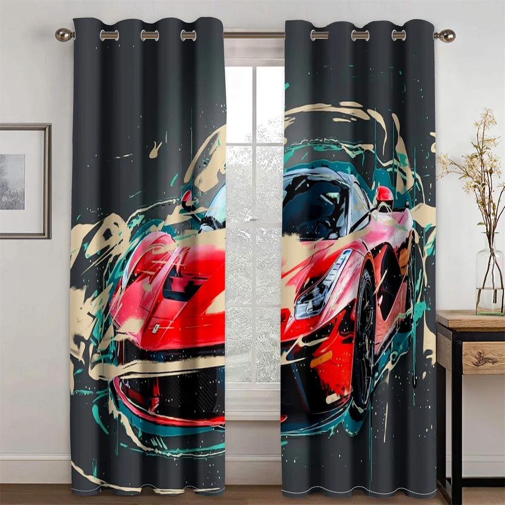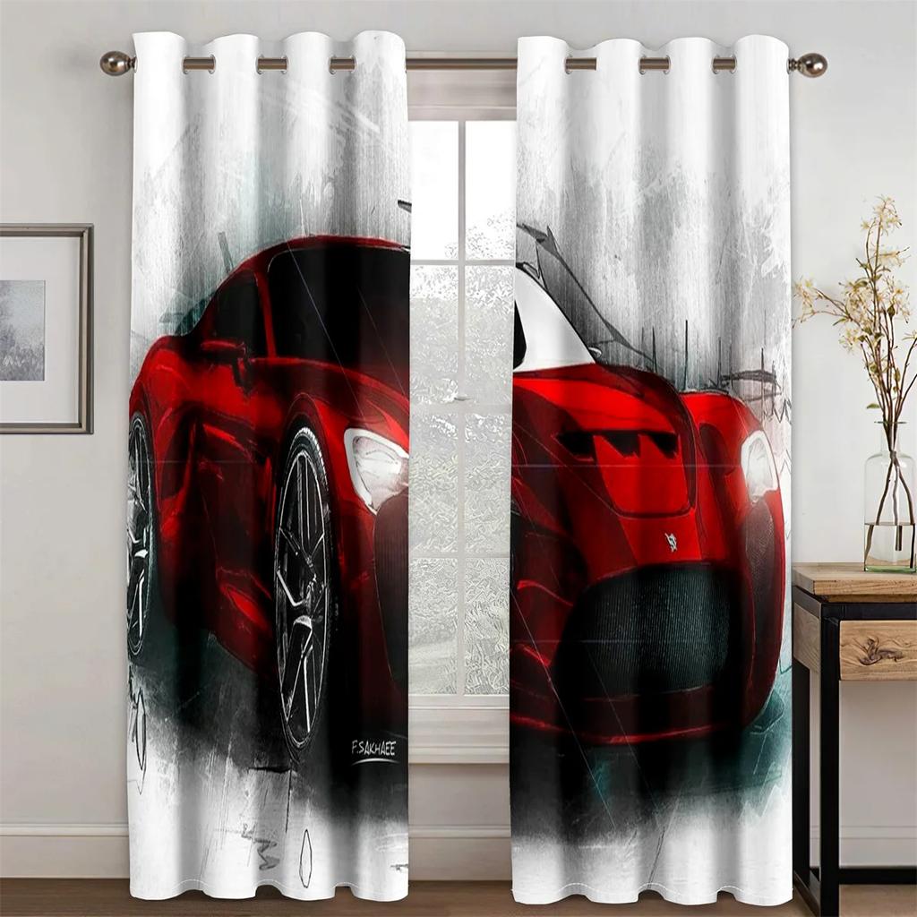 Комикс гоночный автомобиль крутой печатный 3D современный светофильтрующий занавес оконные шторы для детской девочки гостиная спальня 2 шт