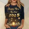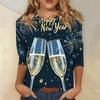 Женская мода повседневная новогодняя принтованная круглая горловина с рукавом три четверти топ Новый год 2025