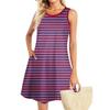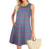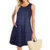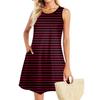 Летние платья для женщин Пляжный Бохо без рукавов Винтажный принт Футболка с карманами Сарафаны-майки