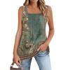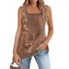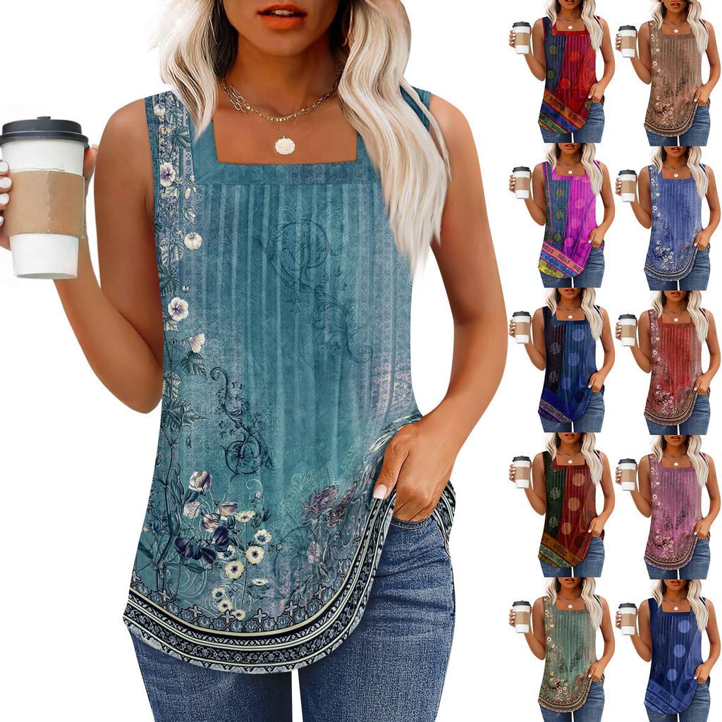 Майка для женщин Летние наряды Без рукавов Блузки с принтом Повседневные свободные рубашки Плиссированные квадратные вырезы