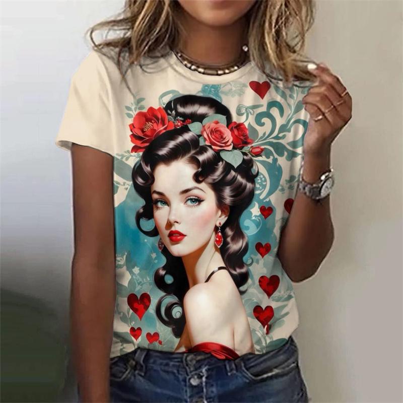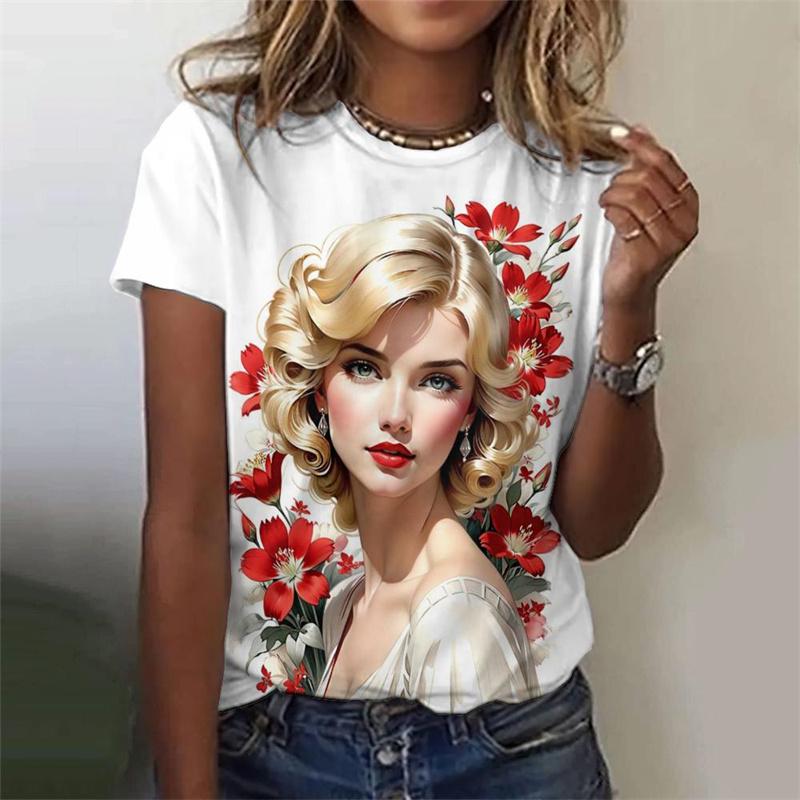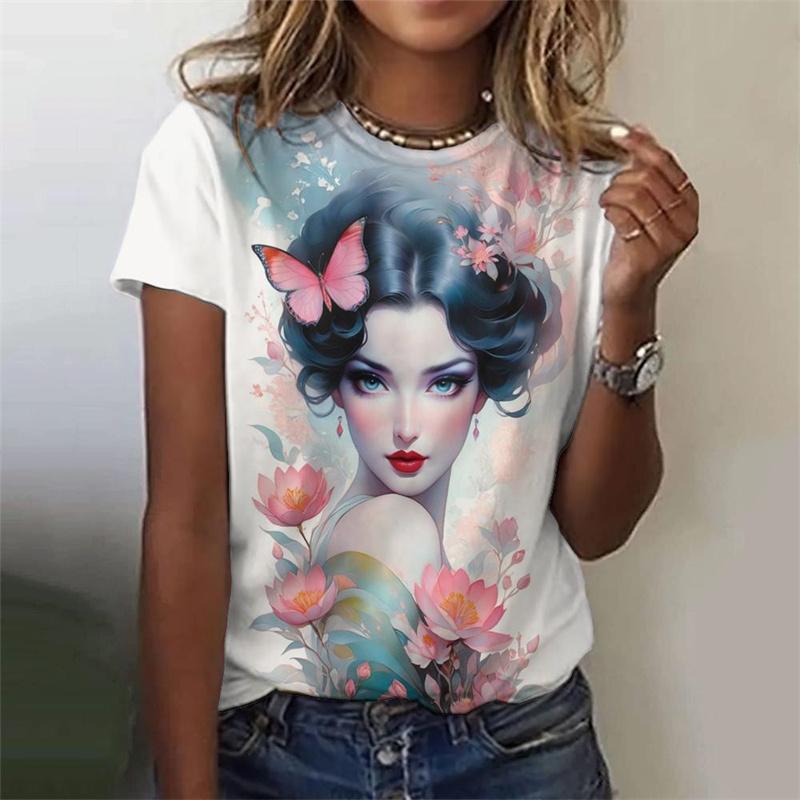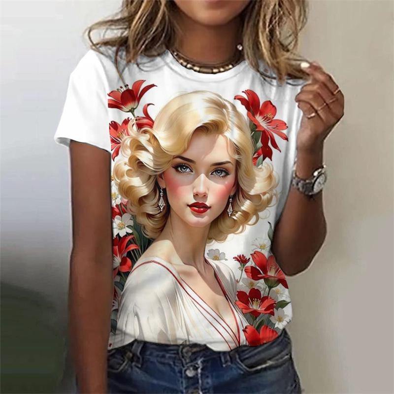 Красивая женская футболка с цветочным узором для девочек с мультяшным 3D-принтом, летние повседневные свободные футболки с круглым вырезом и короткими рукавами