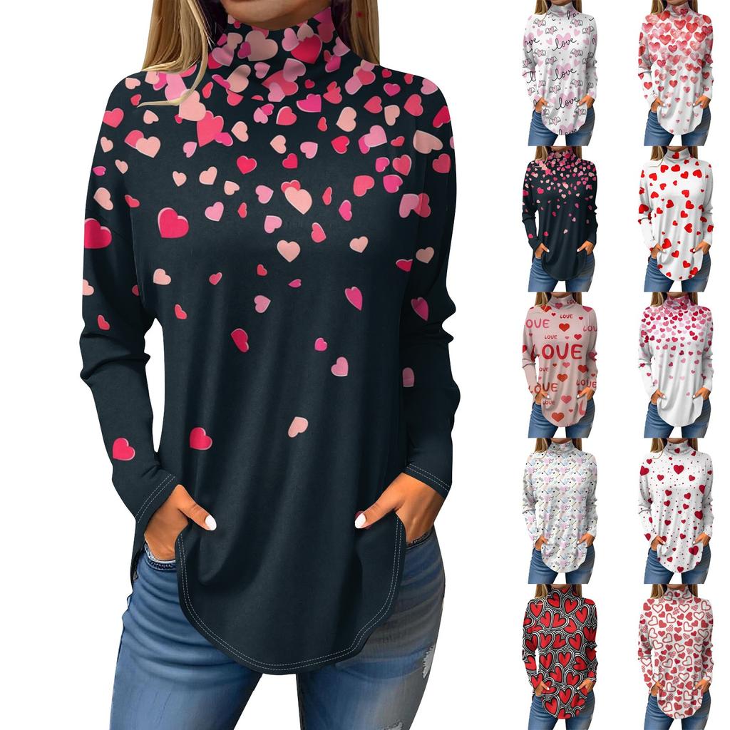 Футболки для женщин, осенние повседневные рубашки с длинным рукавом, толстовка с принтом, топ с высоким воротом, пуловер