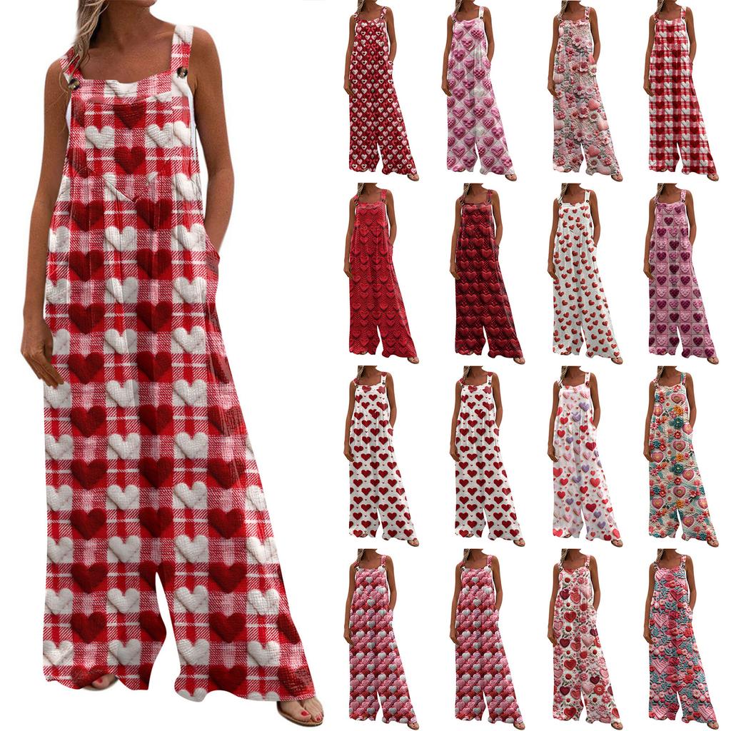 Женский модный повседневный свободный комбинезон с карманами и принтом ко Дню святого Валентина — купить товар онлайн с бесплатной доставкой до всему миру!