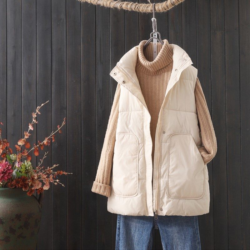 Весна Осень и Зима Женский Жилет Плюс Размер Верхняя Одежда Тонкий Теплый Средней Длины Воротник Свободный Жилет Кардиган Легкий Безрукавный Верхняя Одежда