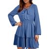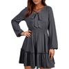 Женские модные свободные повседневные платья с V-образным вырезом и плиссированными оборками и длинным рукавом