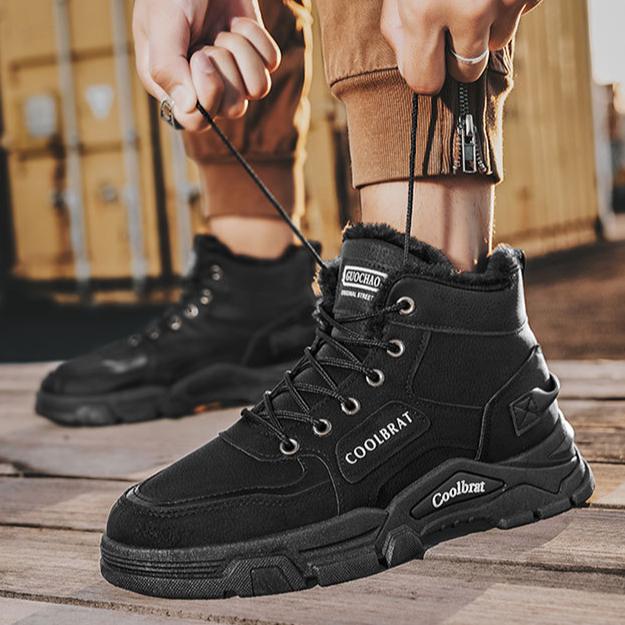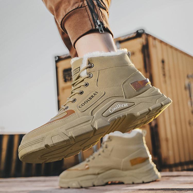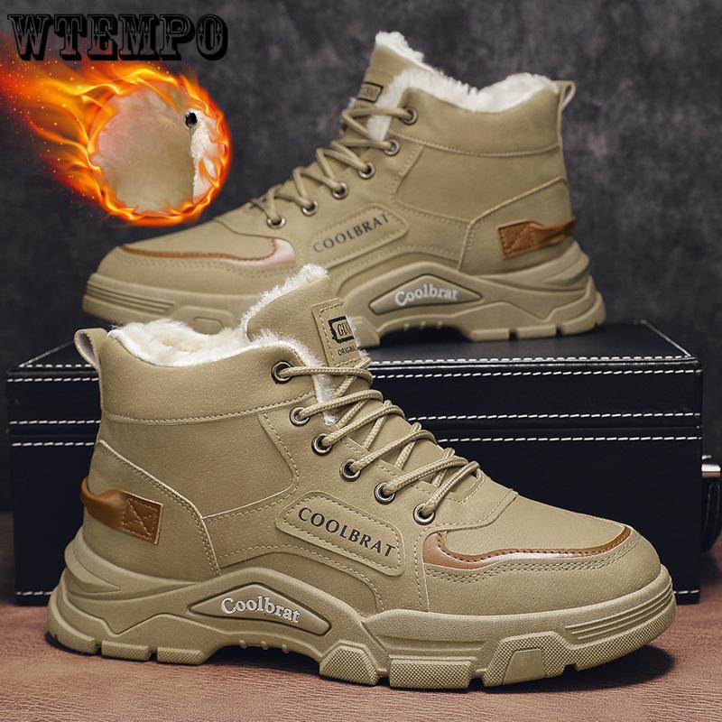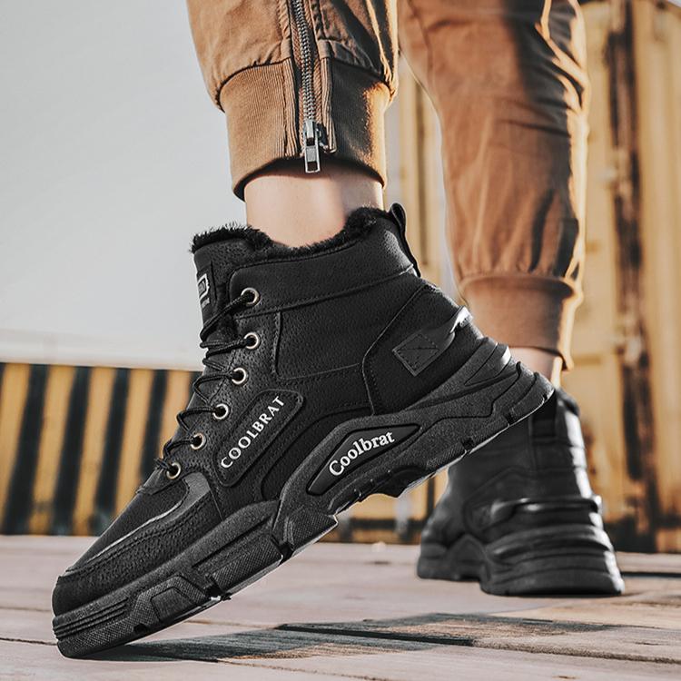 Зимняя обувь для мужчин с толстым бархатом и противоскользящими модными ботинками на толстой подошве для снега