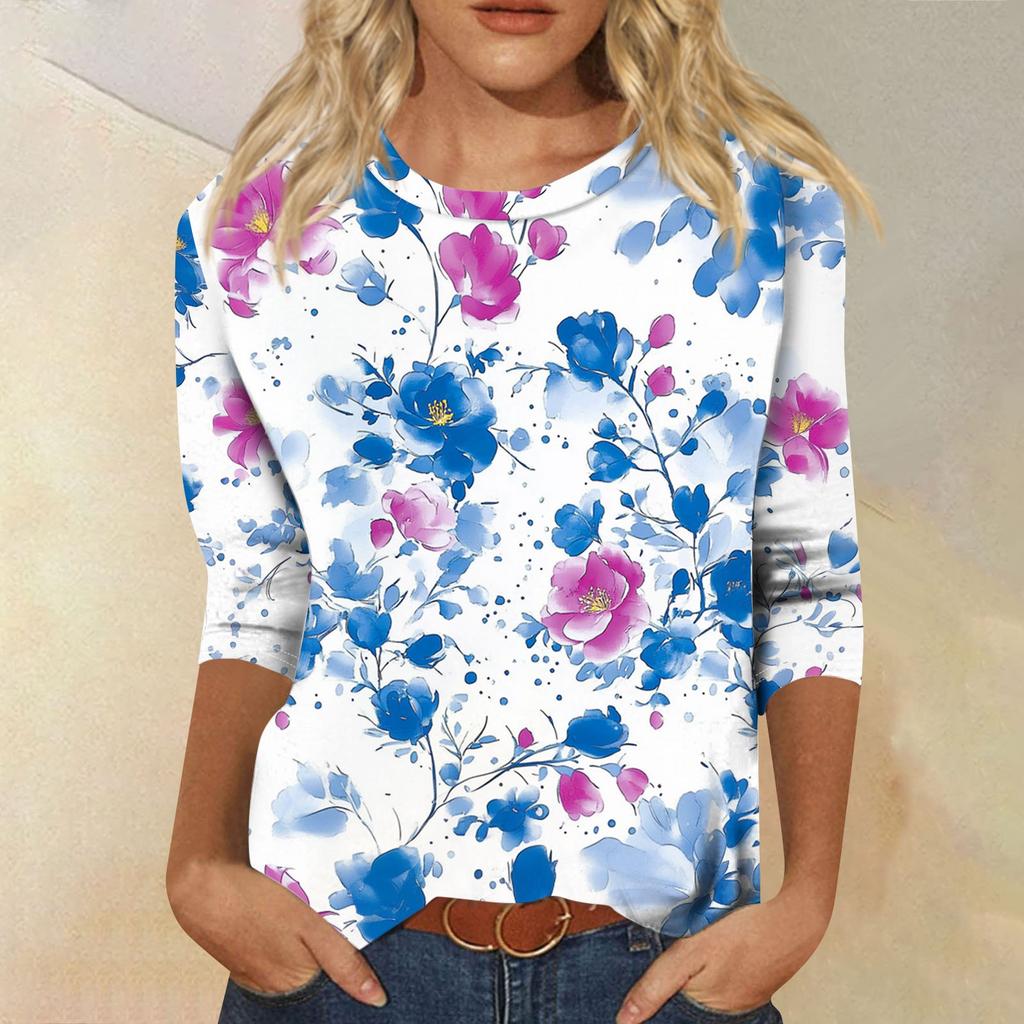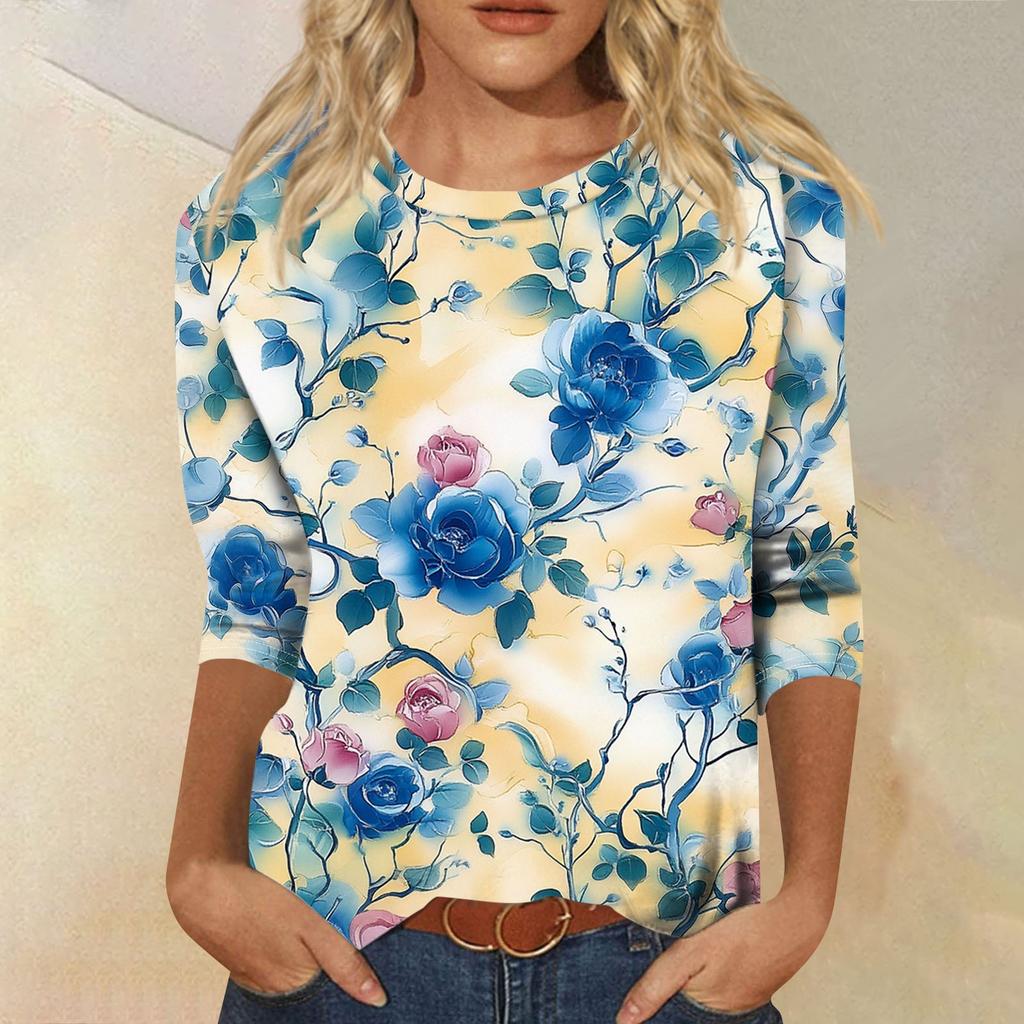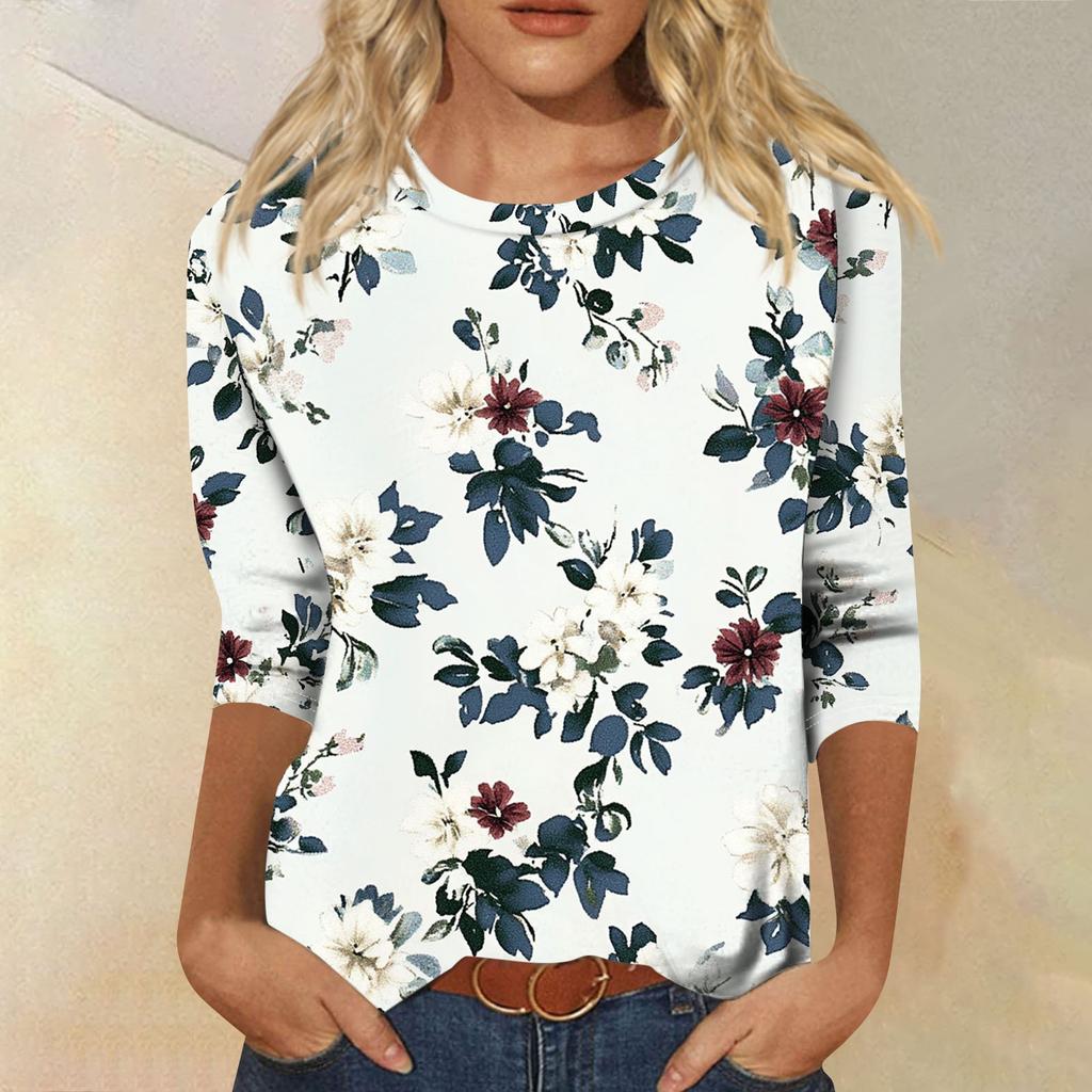 Женский модный повседневный пуловер с рукавом три четверти и цветочным принтом на воротнике