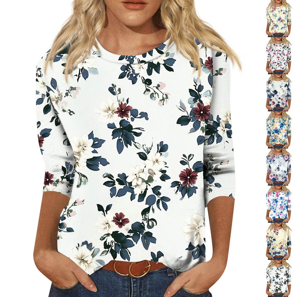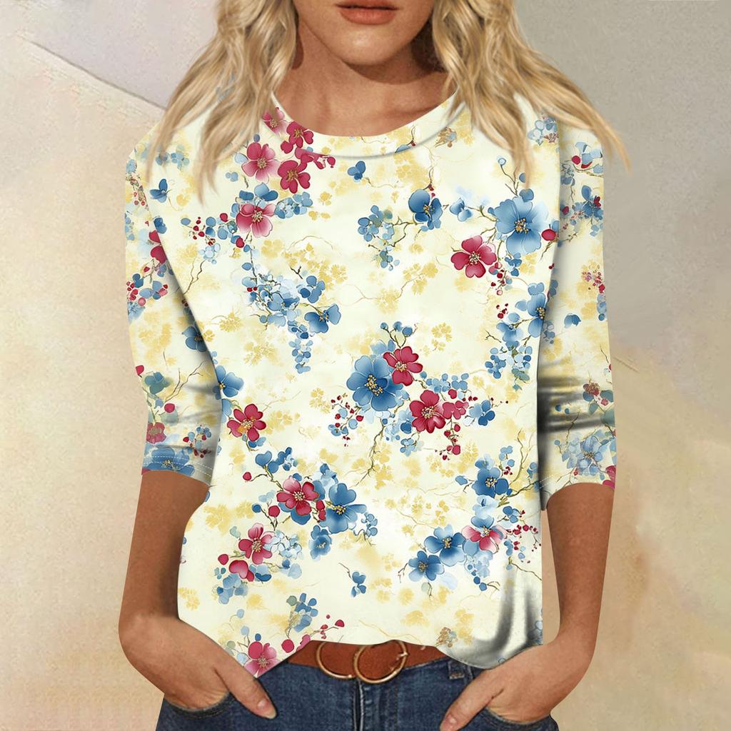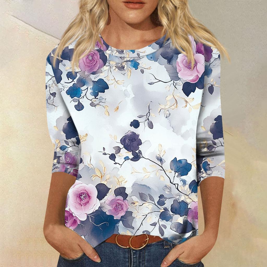Женский модный повседневный пуловер с рукавом три четверти и цветочным принтом на воротнике