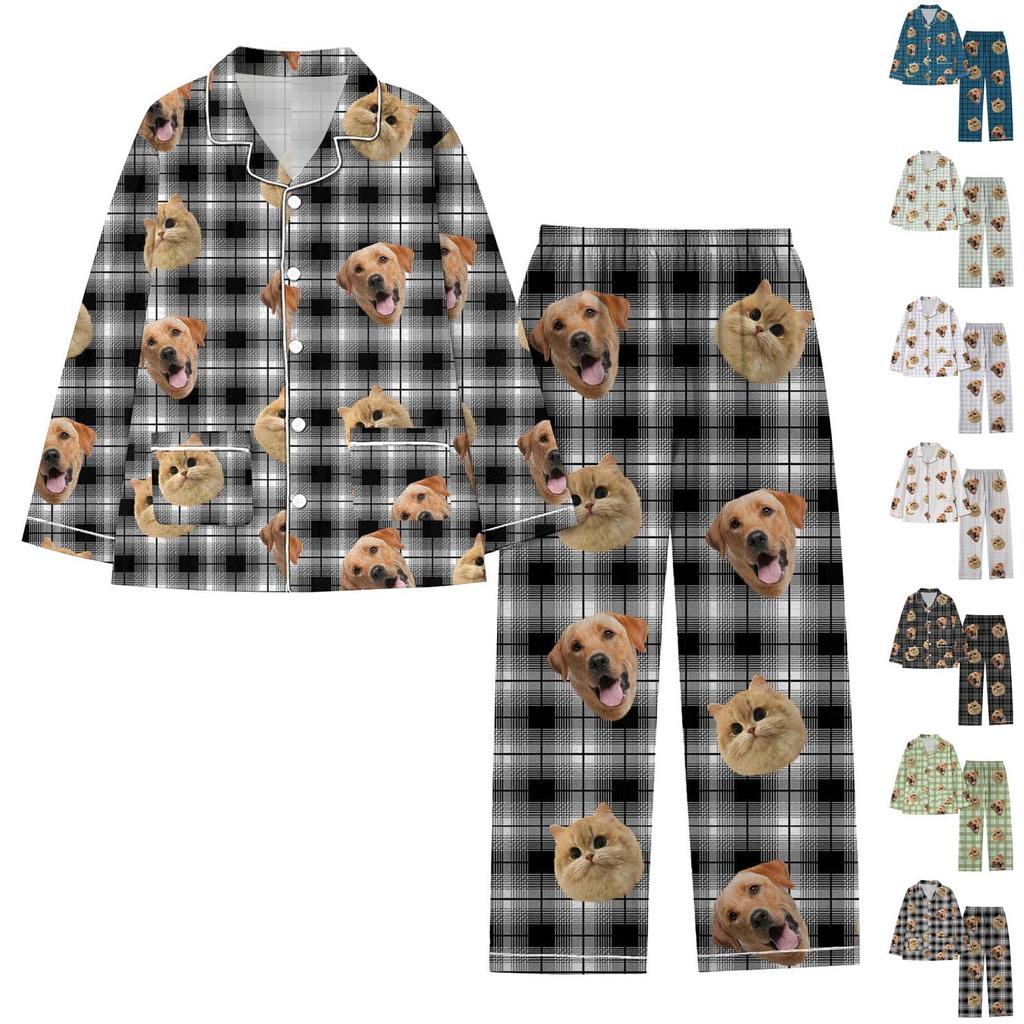 Персонализированные пижамы с лицами для мужчин и женщин, пижамы в подарок для семьи, мамы-кошки, мамы-собачки, индивидуальный рождественский комплект