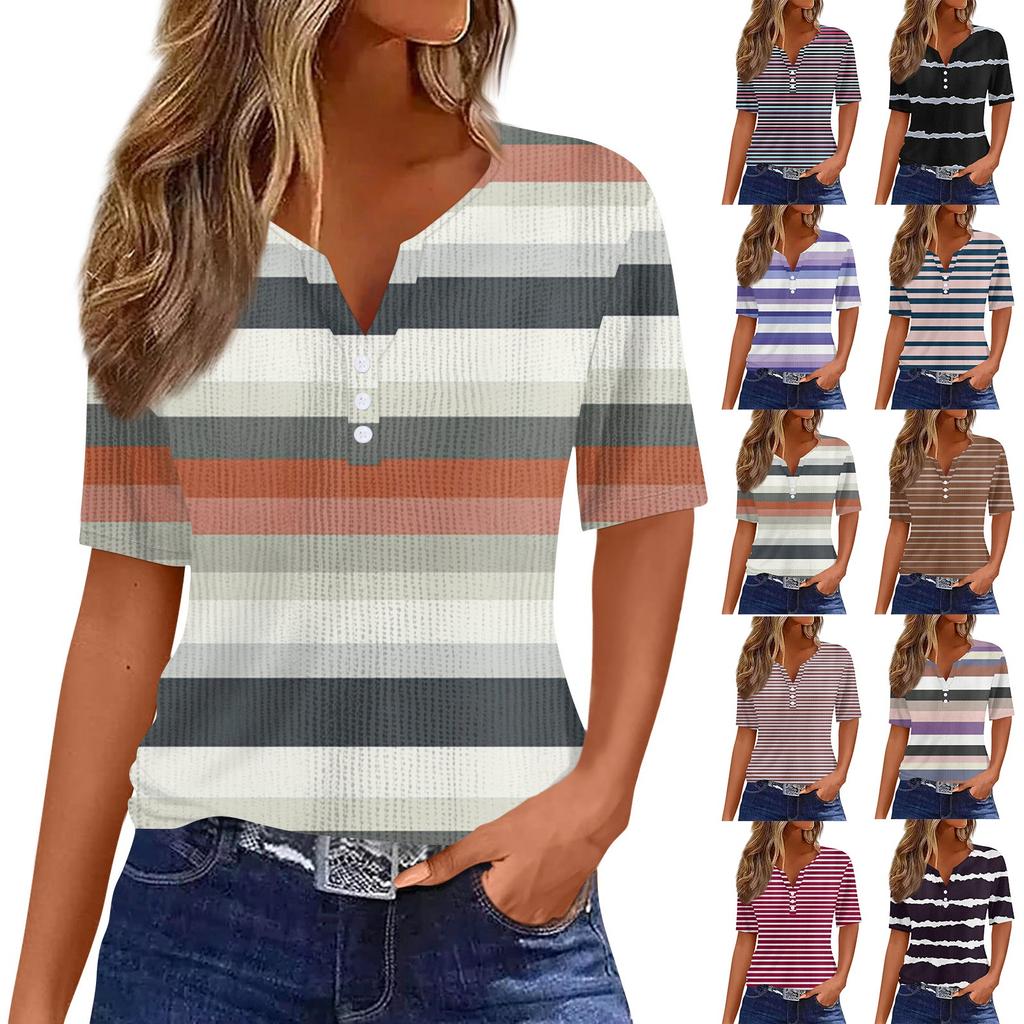 Женская футболка с коротким рукавом и полосатым принтом на шее