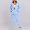 Женская мода с капюшоном, длинным рукавом, однотонная молния, эластичный пояс, свободный комплект свитшотов