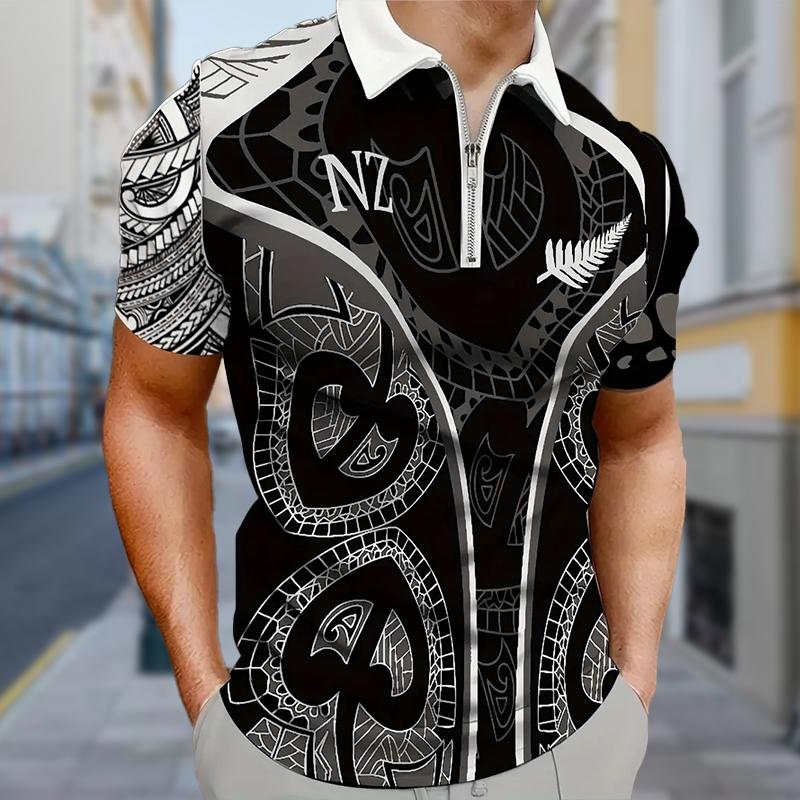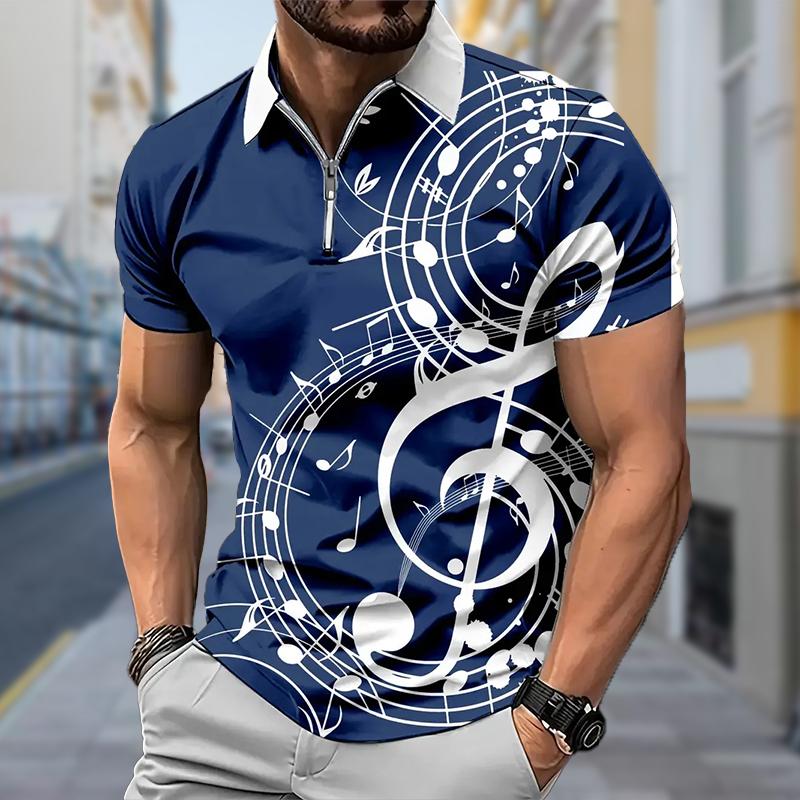 Мужская рубашка поло повседневная на молнии с коротким рукавом модная повседневная на молнии лето весна стандартный крой 3D Note Print Shirt