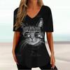 Футболка с рисунком кота Kawaii для женщин, топы с короткими рукавами в стиле Харадзюку, летний пуловер с v-образным вырезом, женская свободная одежда, футболки