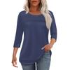Женская мода круглый вырез шея плиссированная передняя планка однотонный топ рукав 3/4