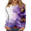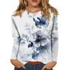 Женская мода повседневный топ с длинным рукавом и круглым вырезом с цветочным принтом