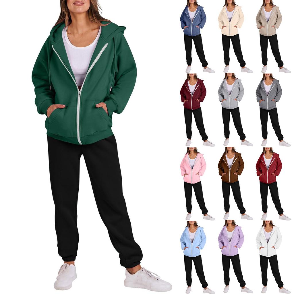 Женская мода с капюшоном, длинным рукавом, однотонная молния, эластичный пояс, свободный комплект свитшотов — купить товар онлайн с бесплатной доставкой по всему миру!