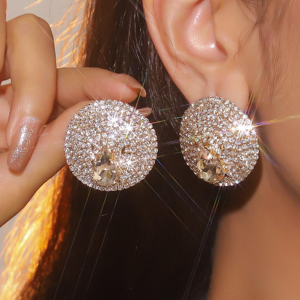 Геометрические круглые бриллиантовые серьги для женщин Высококачественные хрустальные серьги для банкетных представлений