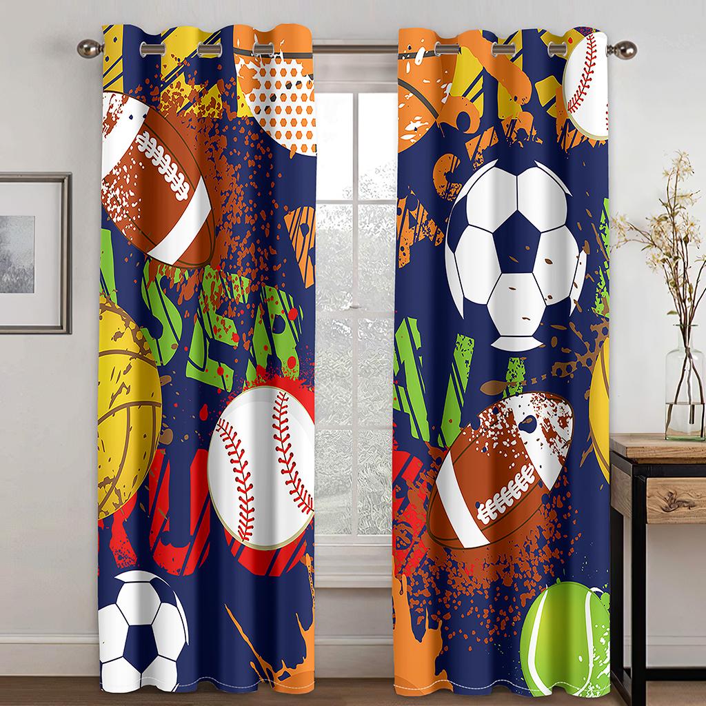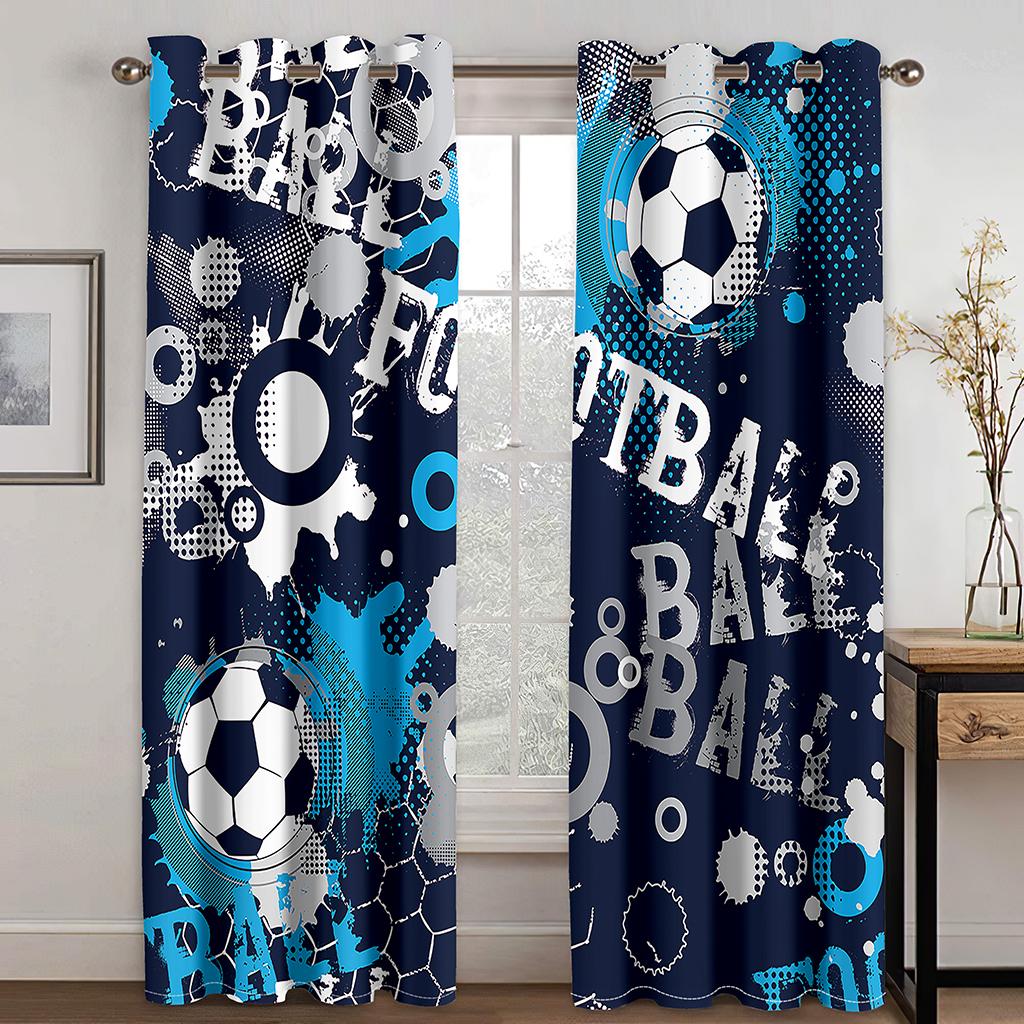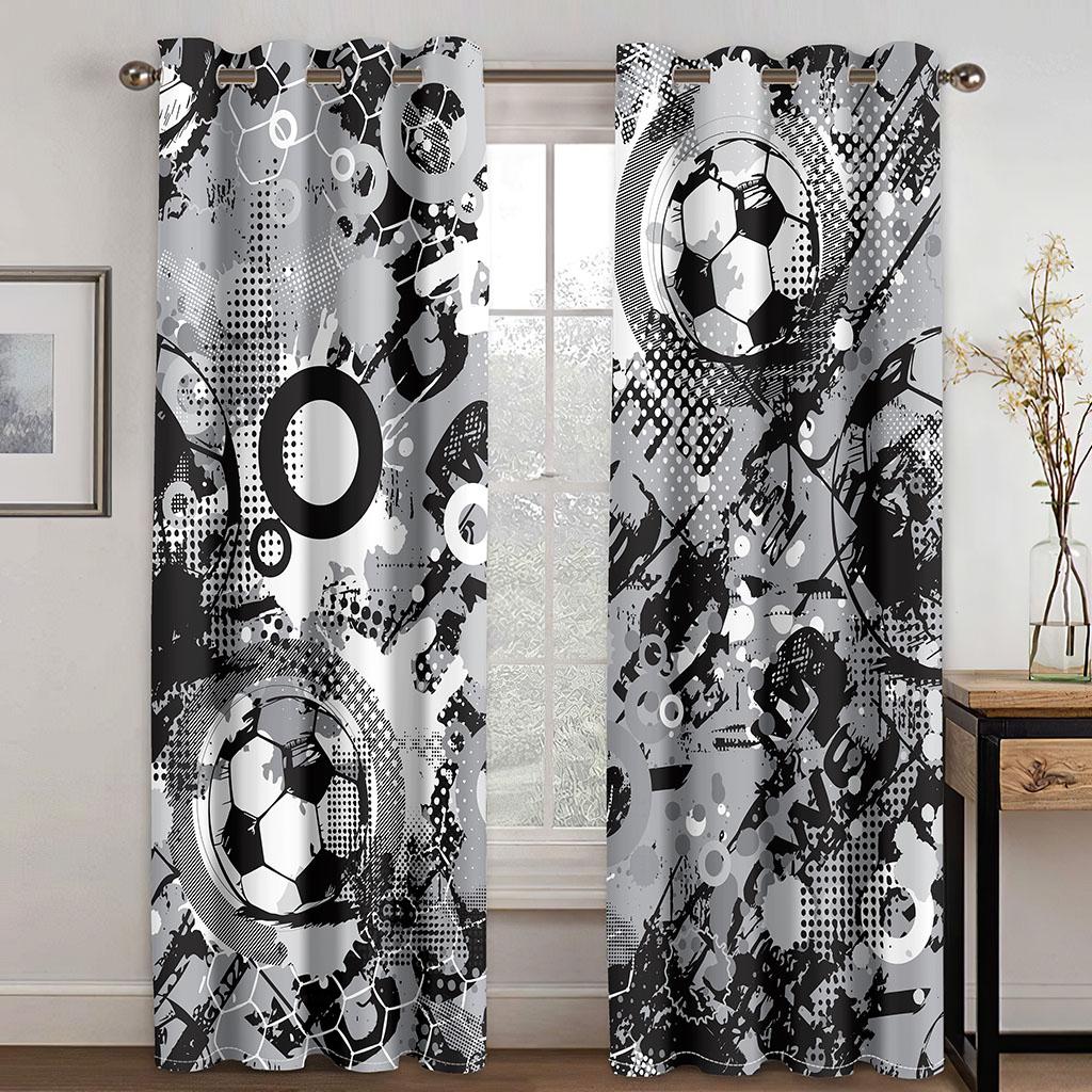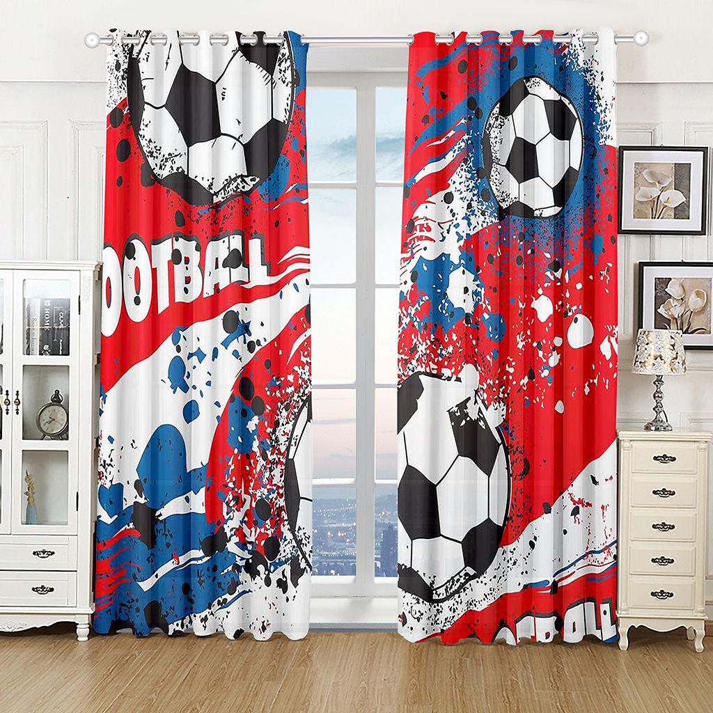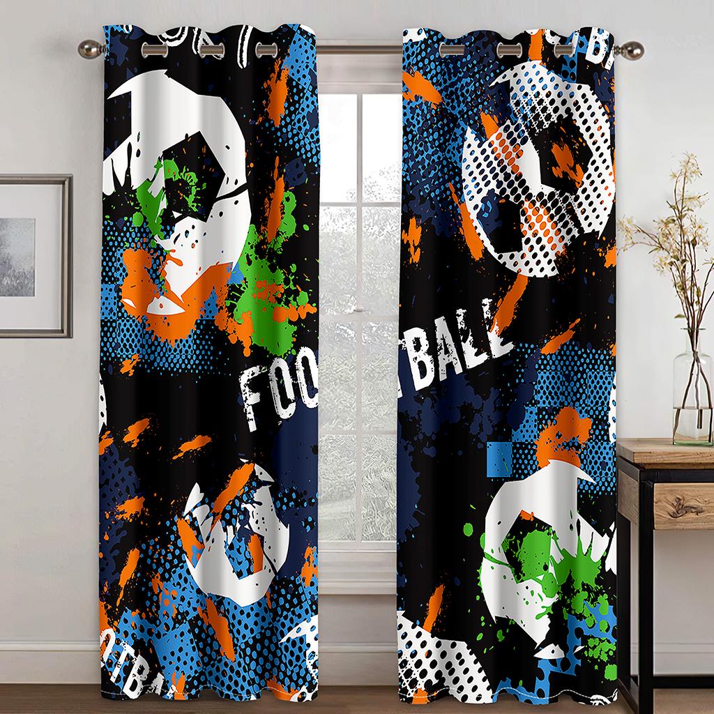 Спортивные занавески Футбольный мяч в огне и воде Пламя, брызги, удар грома Абстрактное концептуальное искусство Окно гостиной спальни