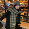 Зеленый винтажный клетчатый шарф для женщин, осенне-зимний универсальный теплый шарф-шаль в корейском стиле