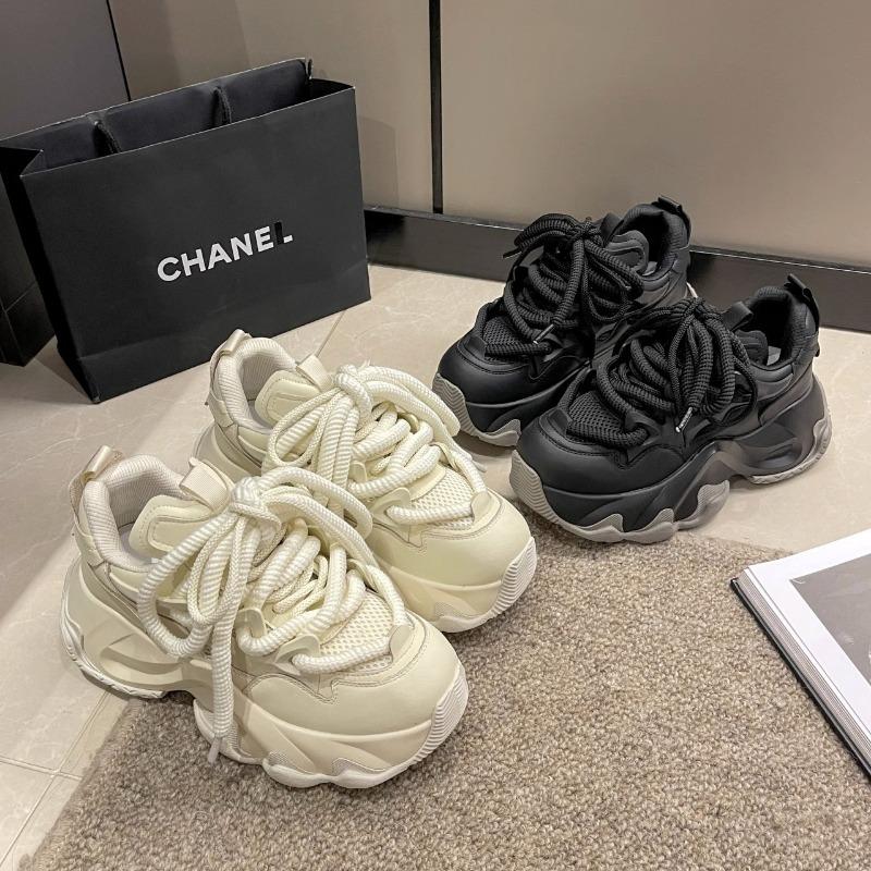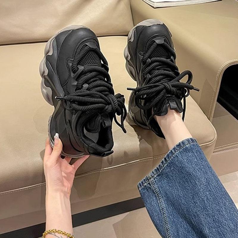 Черные женские кроссовки на платформе 2024 года, весна, шнуровка, толстая подошва, вулканизированная обувь, женская, искусственная кожа, дышащая, спортивная обувь для женщин