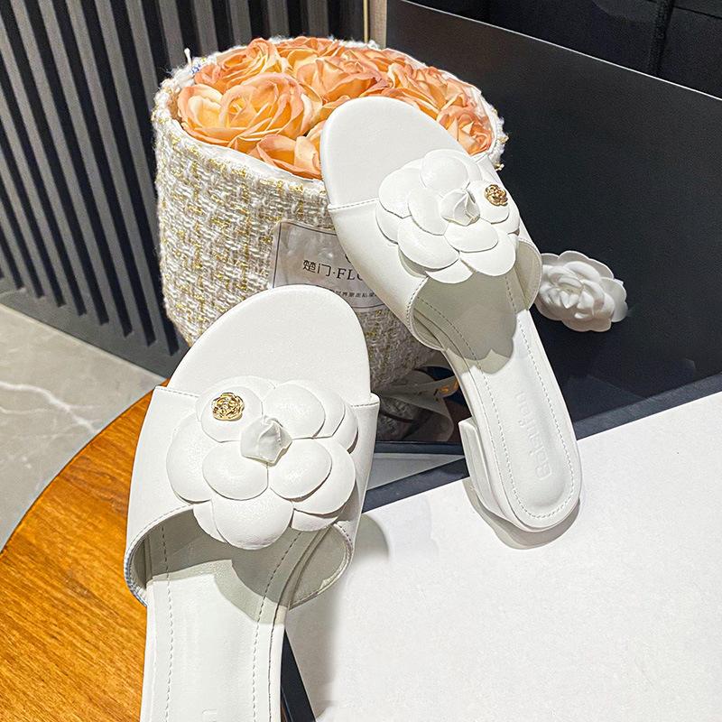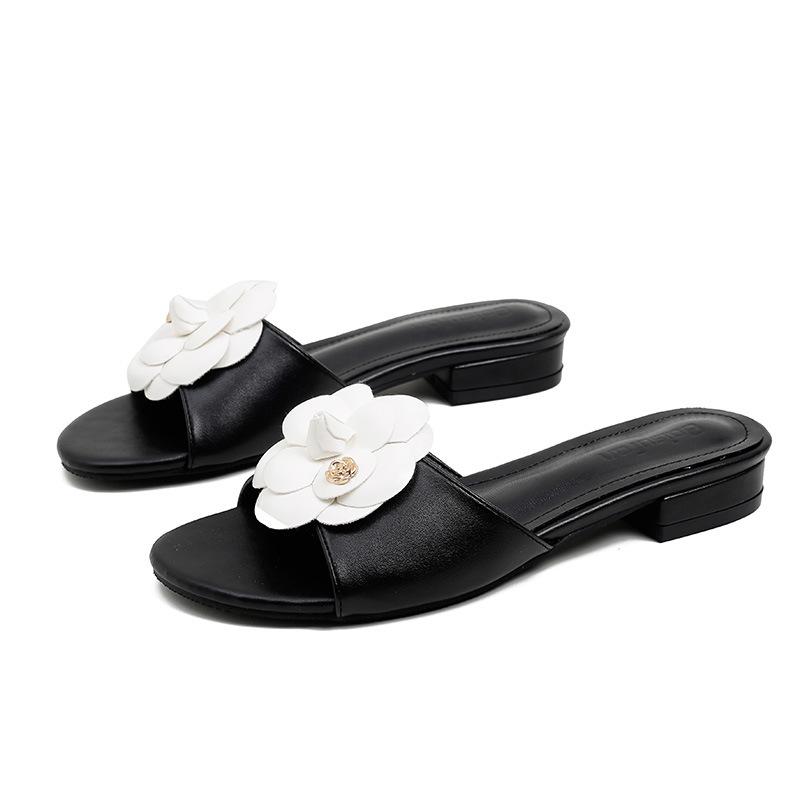 2024 Новые Туфли для Женщин Летние Цветы Кожаные Тапочки Для Девочек Элегантные Уличные Повседневные Сандалии Для Девочек Шлепанцы На Каблуках