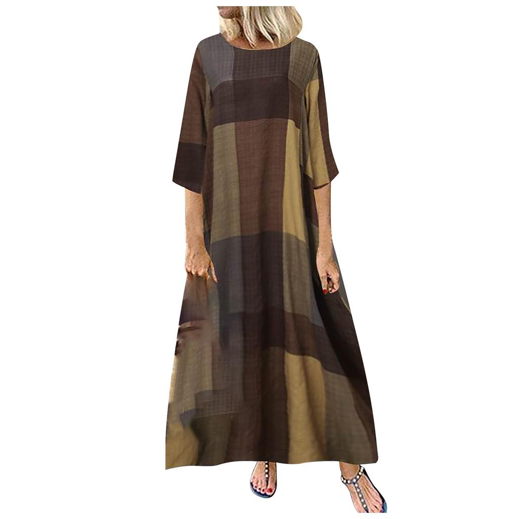 Женское хлопковое льняное платье с длинными рукавами и контрастным принтом