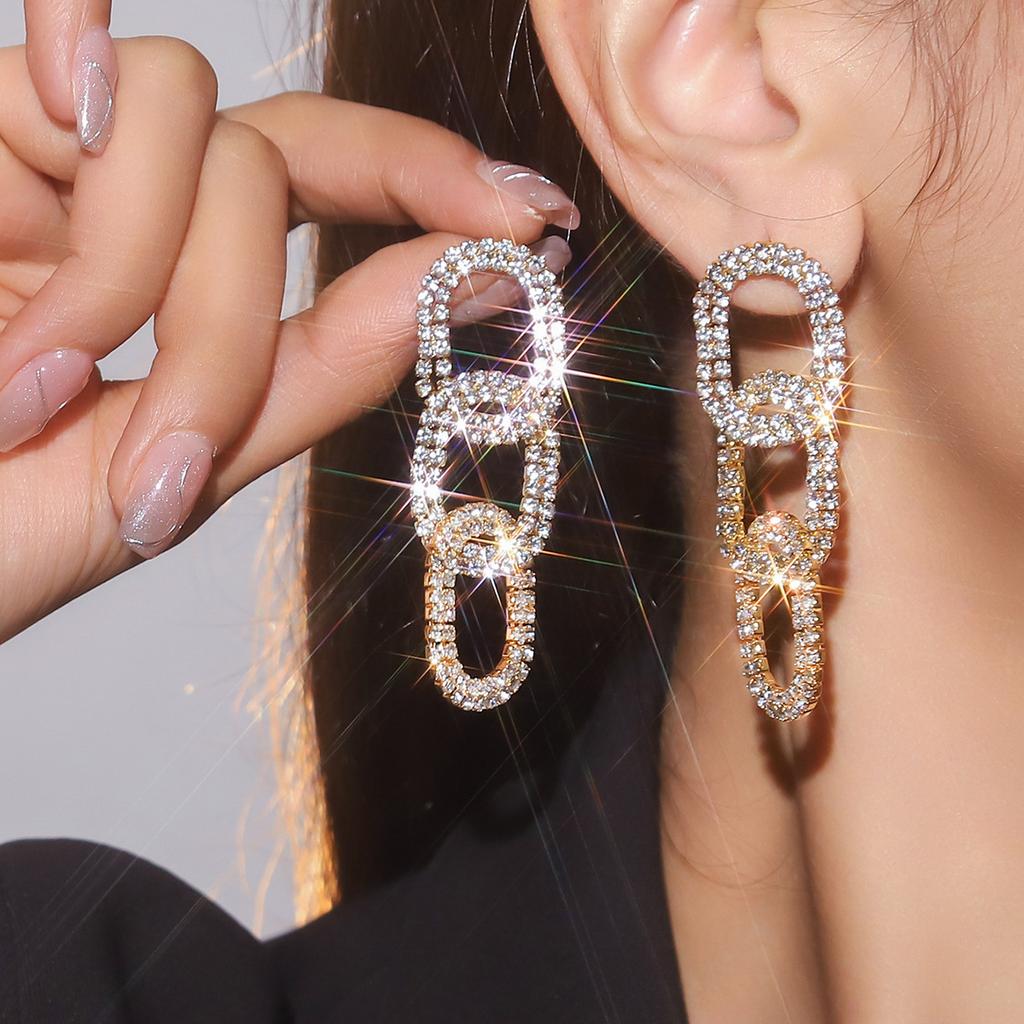 Персонализированные преувеличенные блестящие серьги-цепочки со стразами, темперамент, сто парных сережек, серьги для ночного клуба, женские серьги, 1 пара