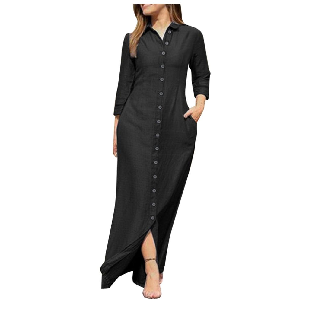 4. особенности: Повседневный стиль, демонстрирующий ваш уникальный шарм и жизненную силу, добавит ощущение элегантности и . Женское модное повседневное платье Solor Color Лацкан Однобортная Панель Прямая Карман с длинным рукавом Свободная хлопчатобумажная рубашка Длинное платье кажется мягким и удобным, и Вам понравится, когда вы его получите